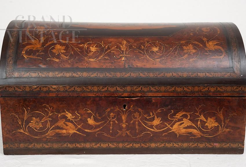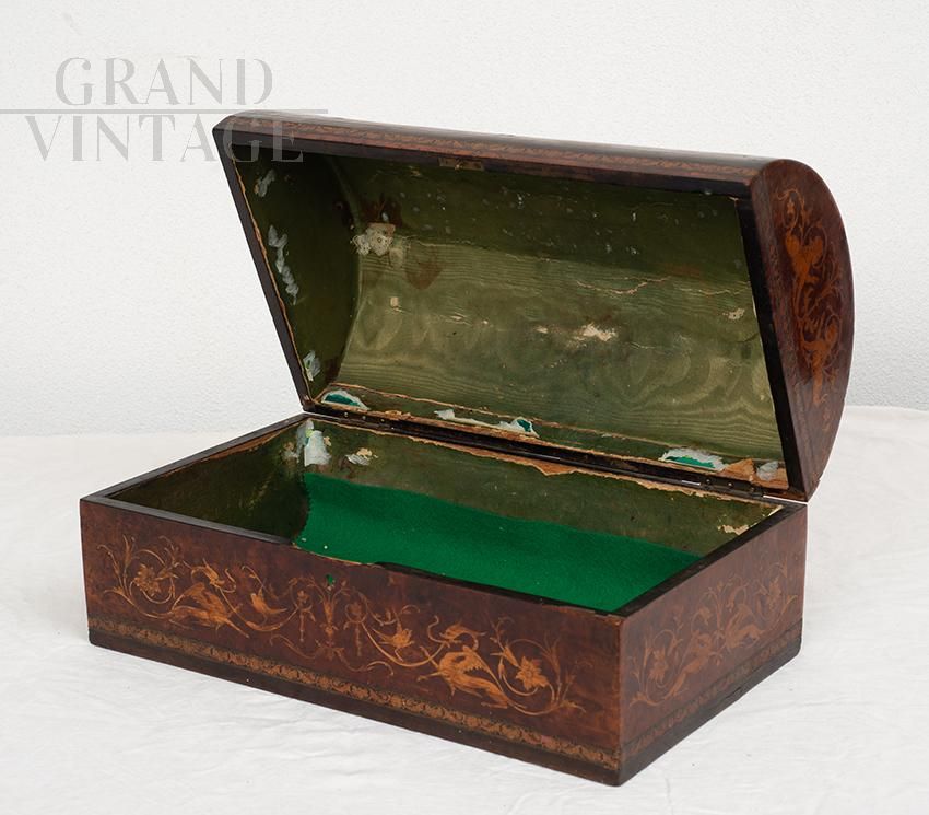 Antique Sorrento jewelry box in precious exotic woods, 19th century