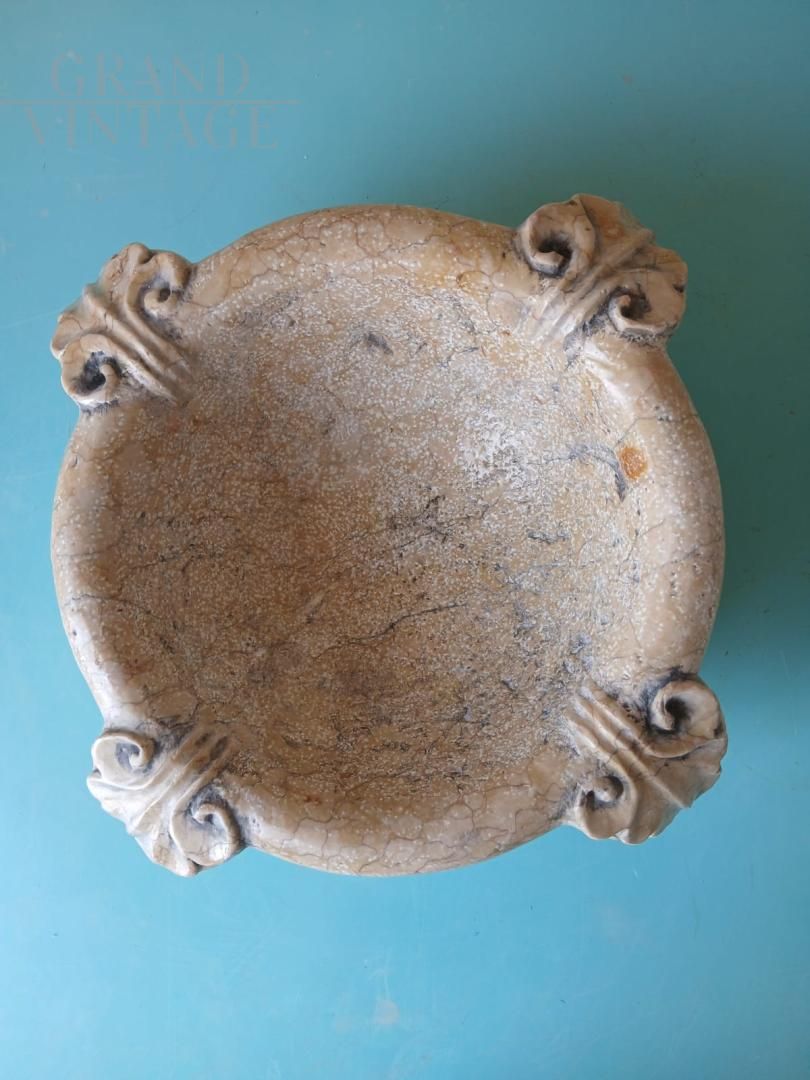 Magnificent antique-style pocket emptier made of royal yellow marble and finely carved with acanthus leaves, produced using ancient materials and techniques.