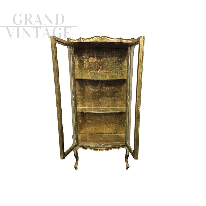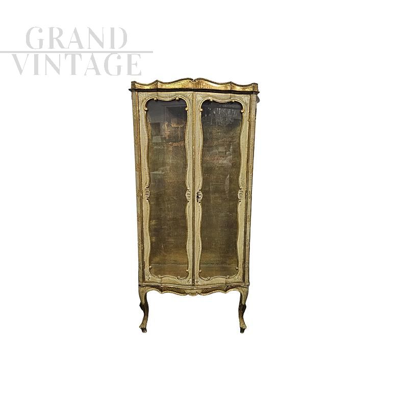 Antique-style Venetian display cabinet lacquered in gold