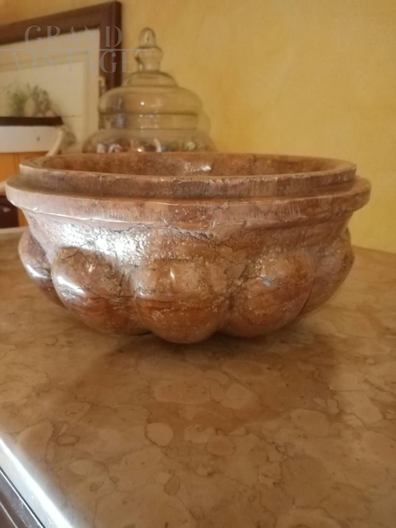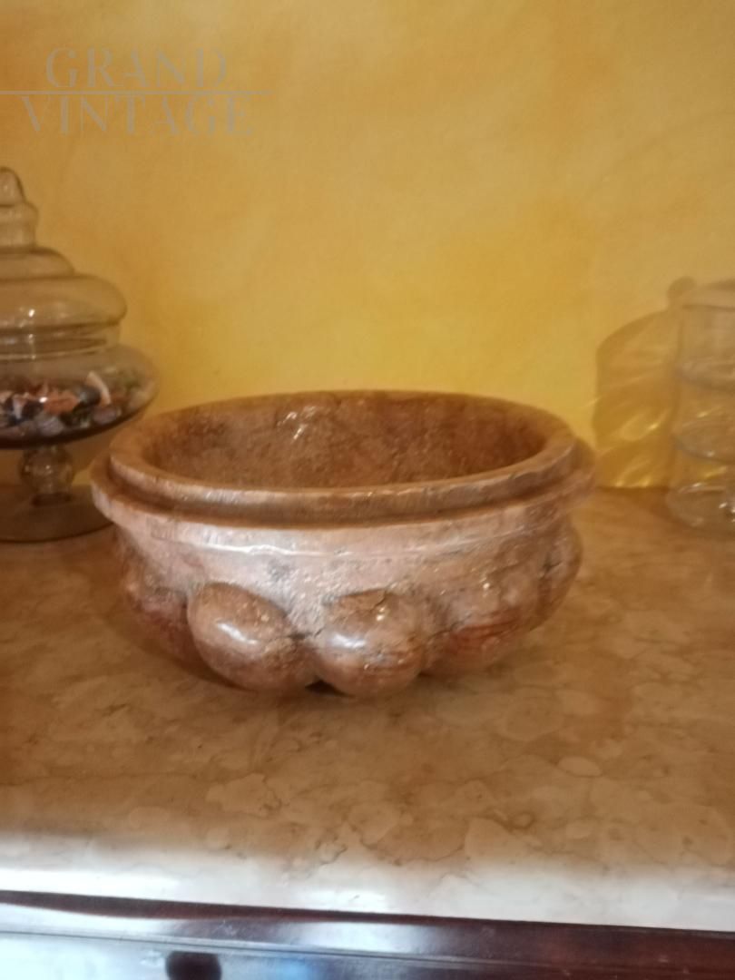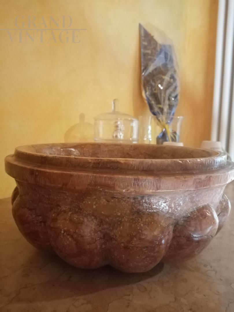 Antique style bowl in red Verona marble, which can also be used as a small stoup, handcrafted and decorated in recent times following ancient marble processing techniques.