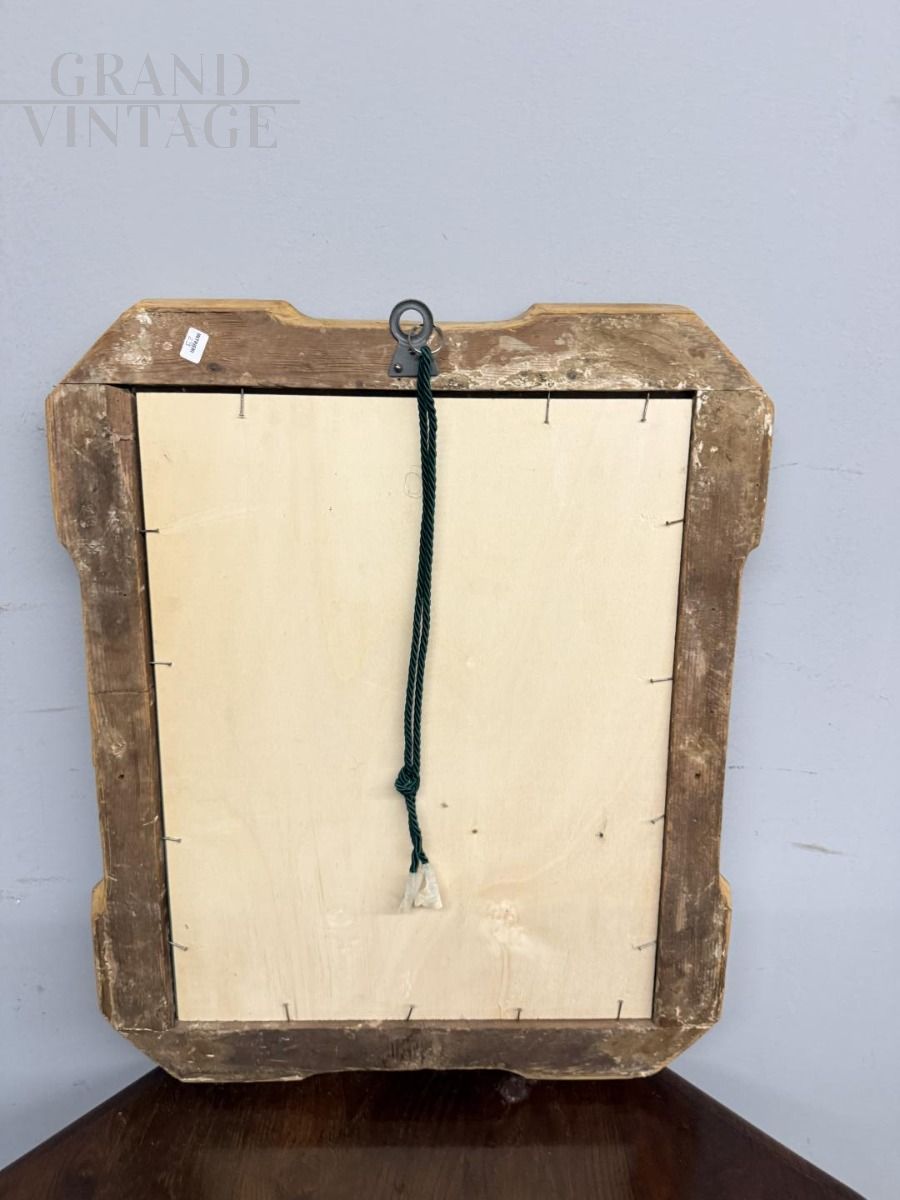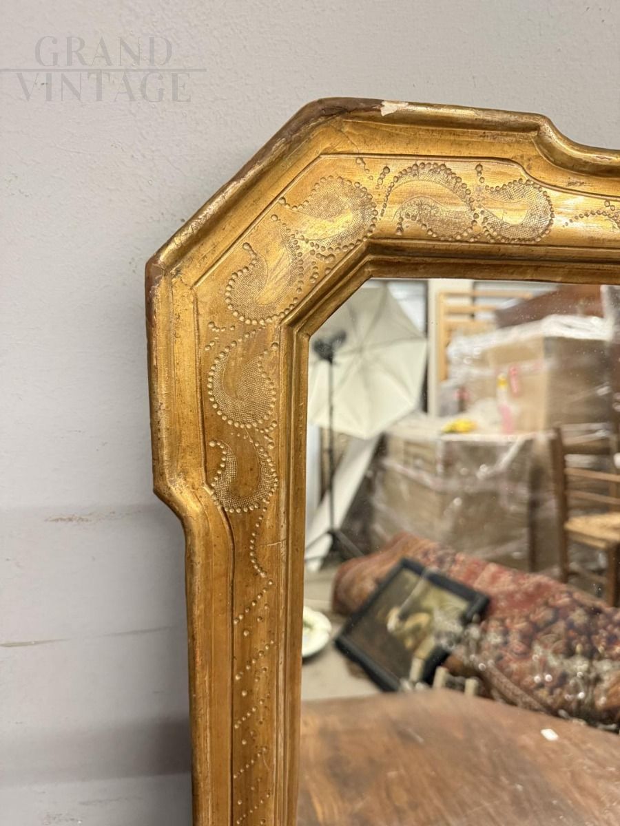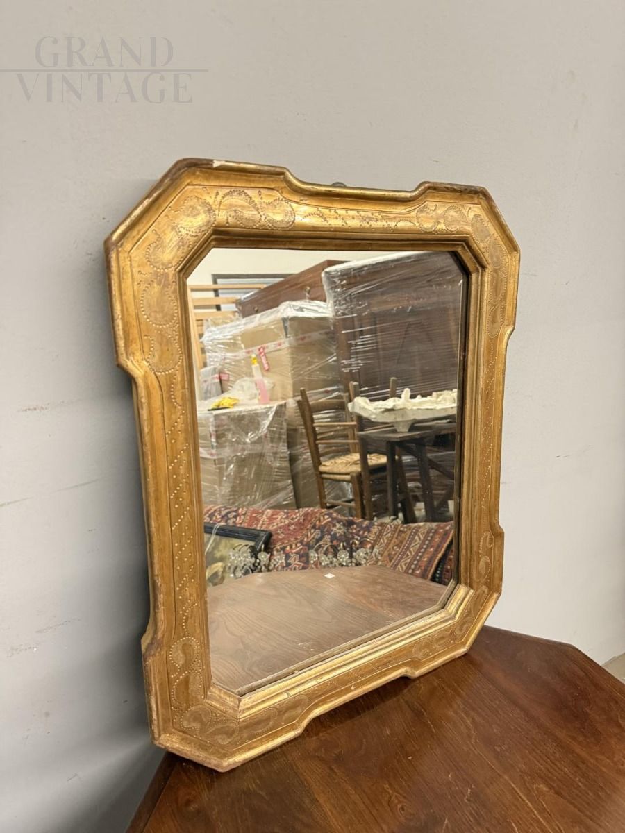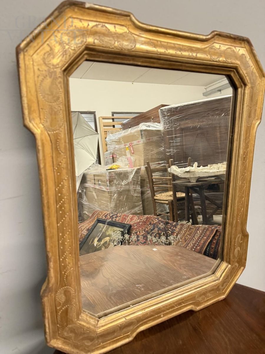 Antique tray mirror from the mid-19th century in gold leaf with engraved workmanship