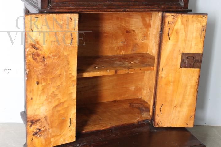 Antique Tuscan kneeler from 1750 with two storage compartments and a lifting surface, restored maintaining its beautiful patina. The piece of furniture is characterized by two central doors with storage compartment, which make it also suitable as a pantry in a modern perspective. All original, including the nails and boards on the back and underneath.
