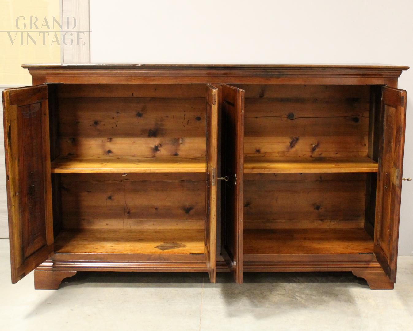 Antique walnut sideboard with 4 doors, Italy 18th century