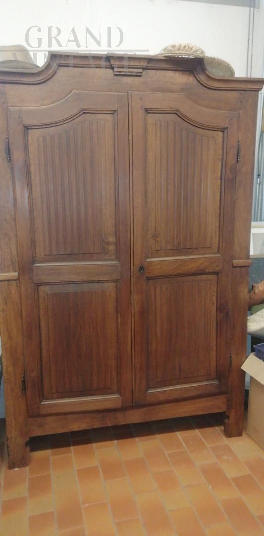Large antique wardrobe in walnut with two separate bodies, late 18th century, restored.