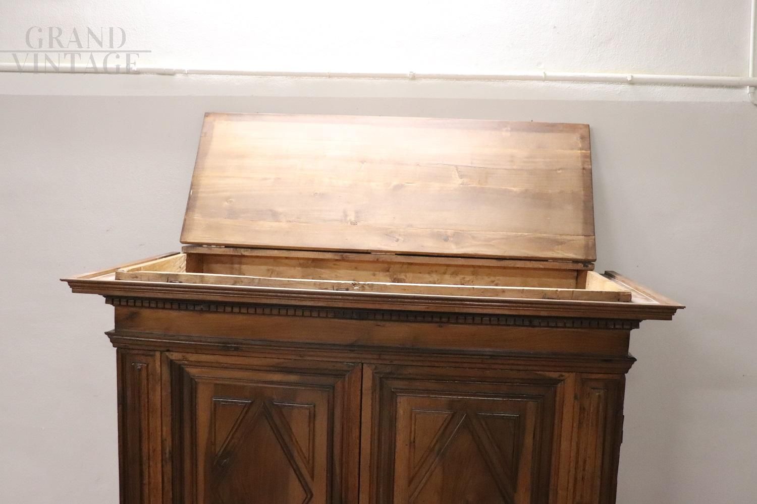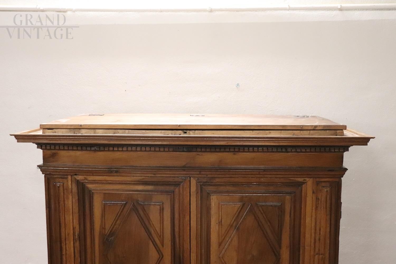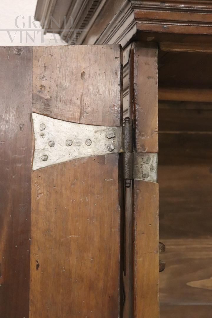 Antique wardrobe in solid walnut with secret compartment, 17th century