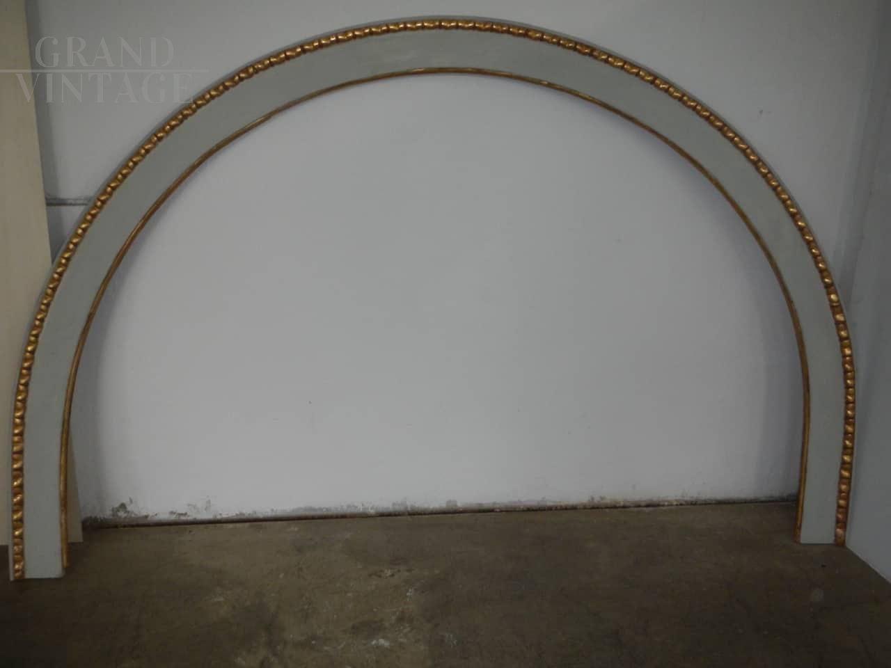 Antique white lacquered frame arch with gold leaf twist, 1920s