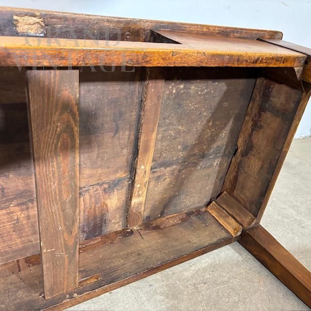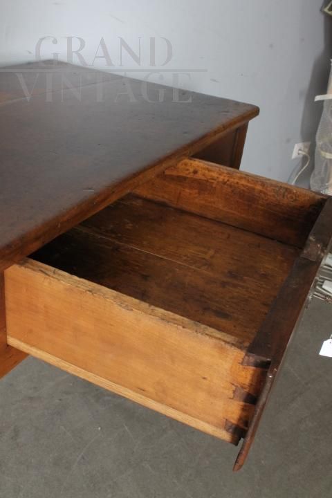 Antique walnut table or writing desk from the late 18th century, Louis XVI style, made entirely of solid walnut, with simple, clean lines, truncated pyramidal legs and a central drawer. Restored with a beeswax finish.