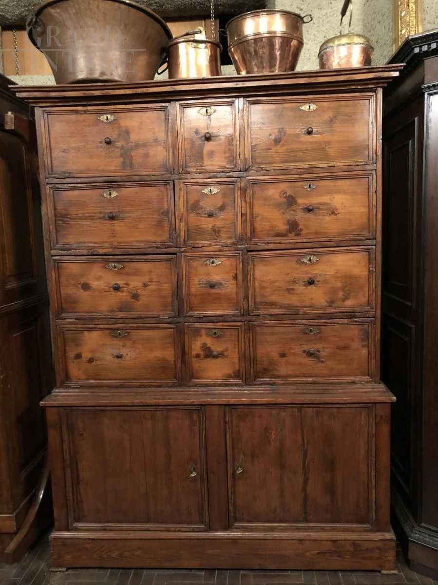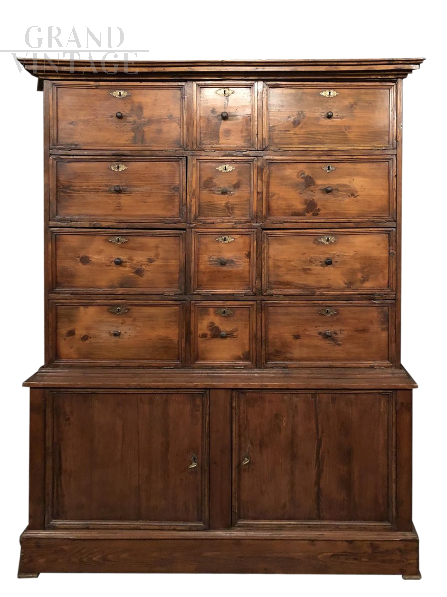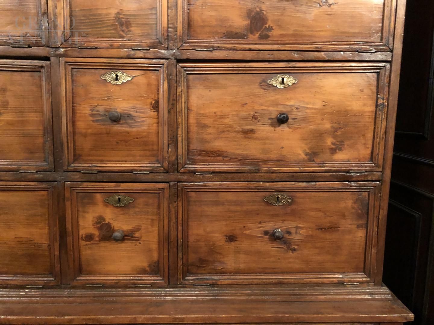It dates back to the mid-nineteenth century, it is made of conifer wood with locks and also original knobs on each door.
