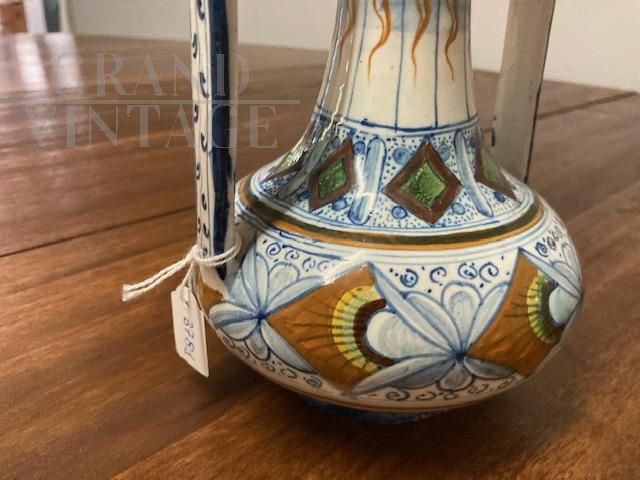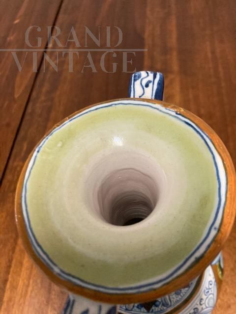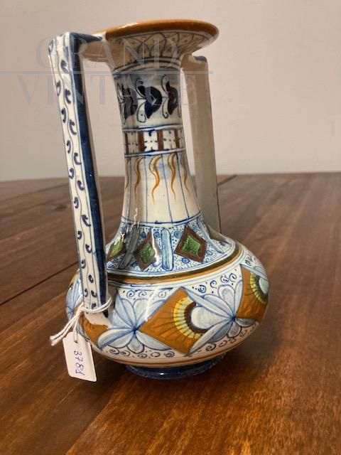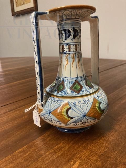 Small amphora vase from the Art Deco period in painted and decorated polychrome majolica ceramic, made by the Cantagalli factory in Florence, 1930 - 1940. In good condition.