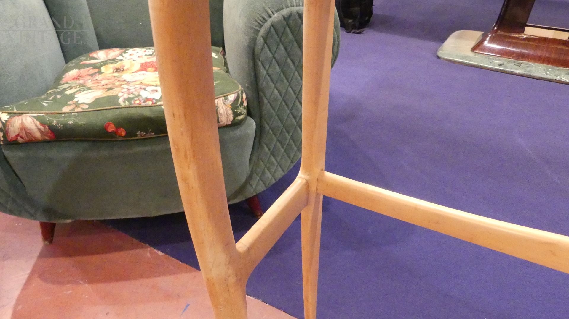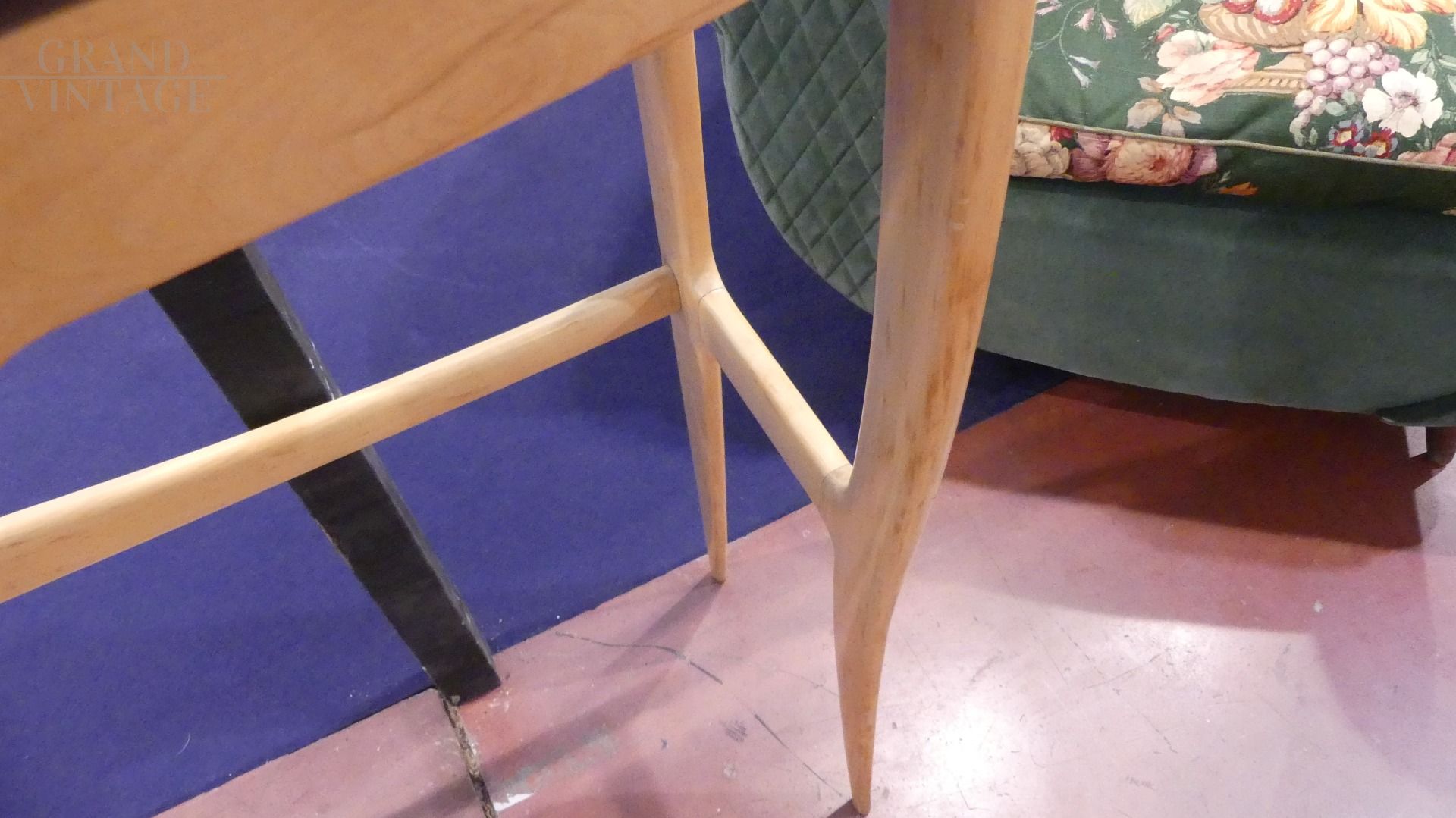 1950s Art Deco console with light maple wood structure and drawer under the beautiful black Portoro marble top. The console has been restored.