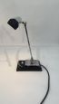 This table lamp has a linear and modern design, with an elegant combination of materials: polished chrome and black lacquered wooden base. The body of the lamp is characterized by a rectangular metal stem that supports a horizontal diffuser, also in chromed metal, with light directed downwards, ideal for reading or desk lighting. The solid and shaped base gives stability and a classic touch to the piece. It is equipped with a push button switch positioned on the front for easy use. The black power cable, with 10 A Italian plug, is long and flexible, allowing for comfortable positioning. The lamp has 1 e14 lamp holder. Original lamp from around 1920 Dimensions Height: 37 cm Width: 22 cm Depth: 20