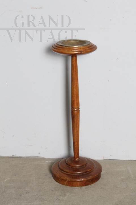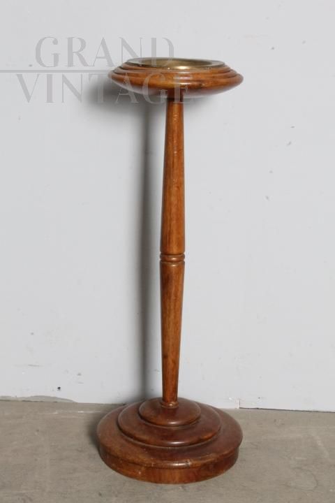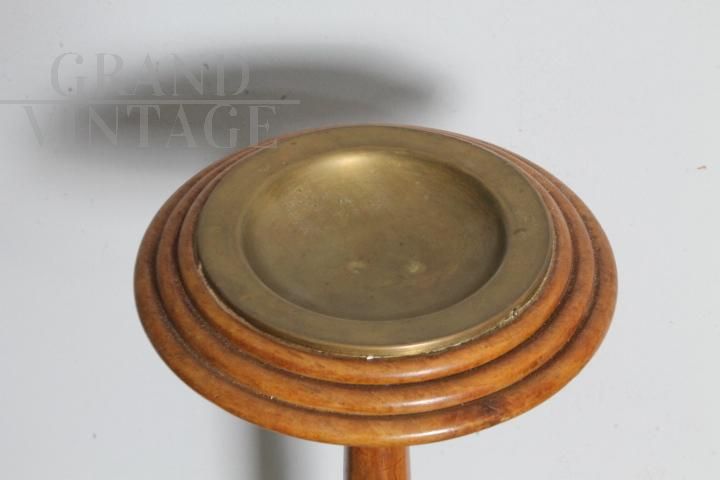Antique and rare art deco floor standing ashtray from 1940, with turned column structure in solid walnut and brass saucer, height 65 cm. Very beautiful design, in very good condition.