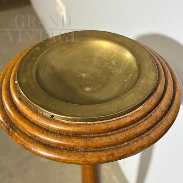 Art deco floor ashtray in solid walnut and brass, 1940s