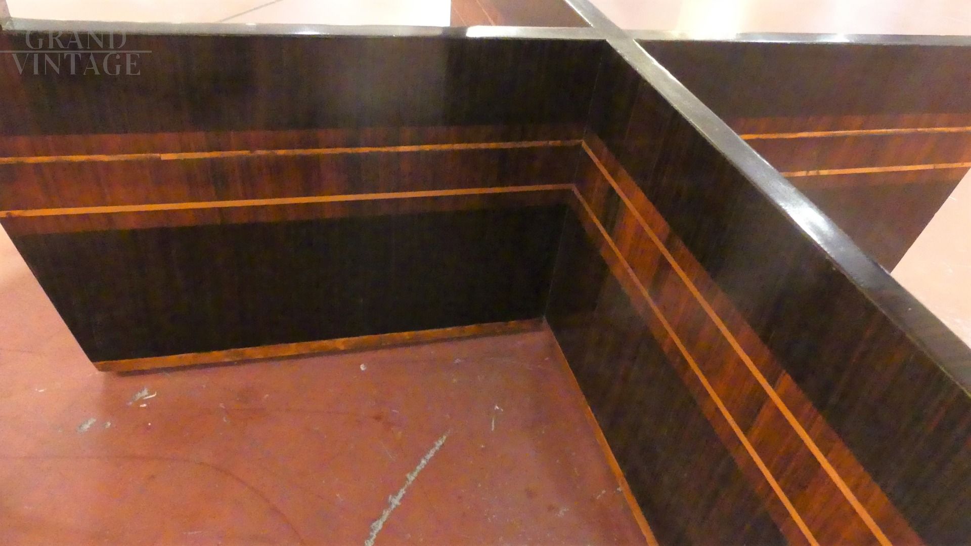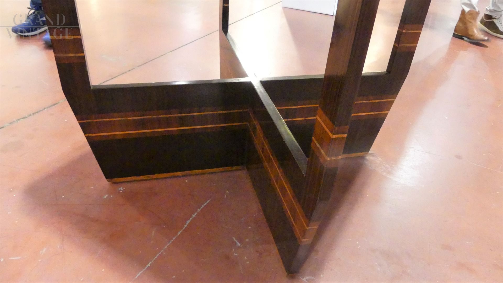 The table legs are made of rosewood, decorated with copper-plated brass lines. Very curious the shape of the legs, which prevented players from touching their legs during the game.