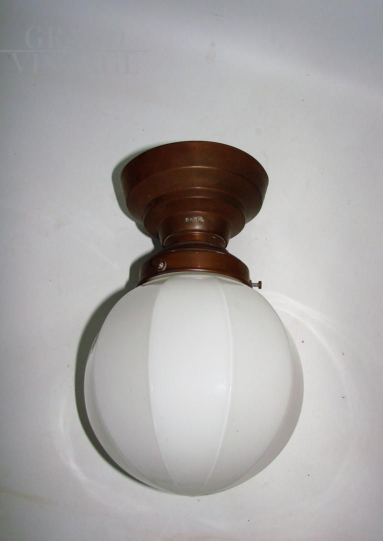 Beautiful Art Déco pendant lamp produced by Zenit D.R.G.H, 1920s, made of brass and white glass. The lamp requires an E27 bulb.