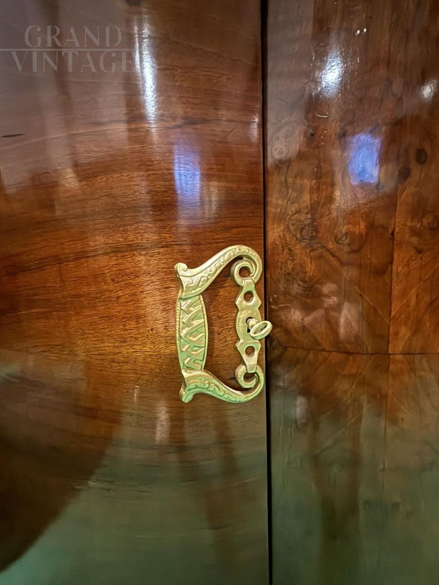 Italian Art Deco sideboard from the 1920s in walnut feather with ebonized parts, bargain price!