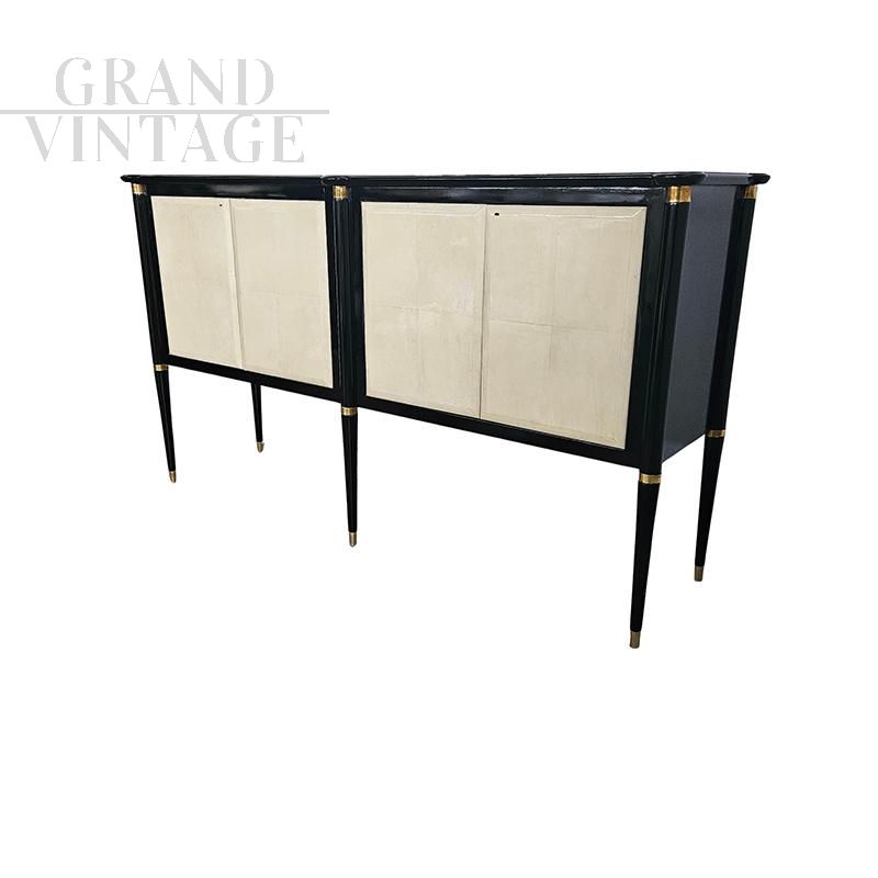 Art Deco sideboard in black wood and parchment