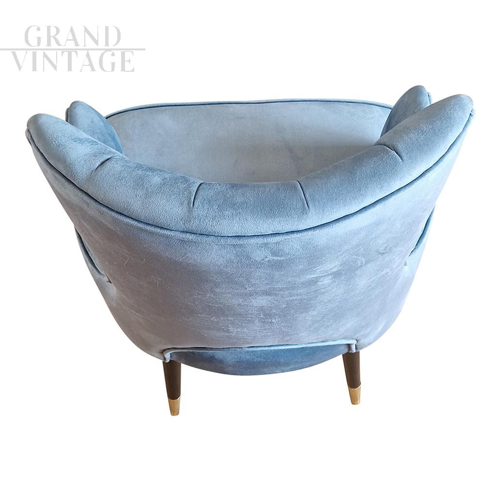 Art deco style armchair in light blue velvet