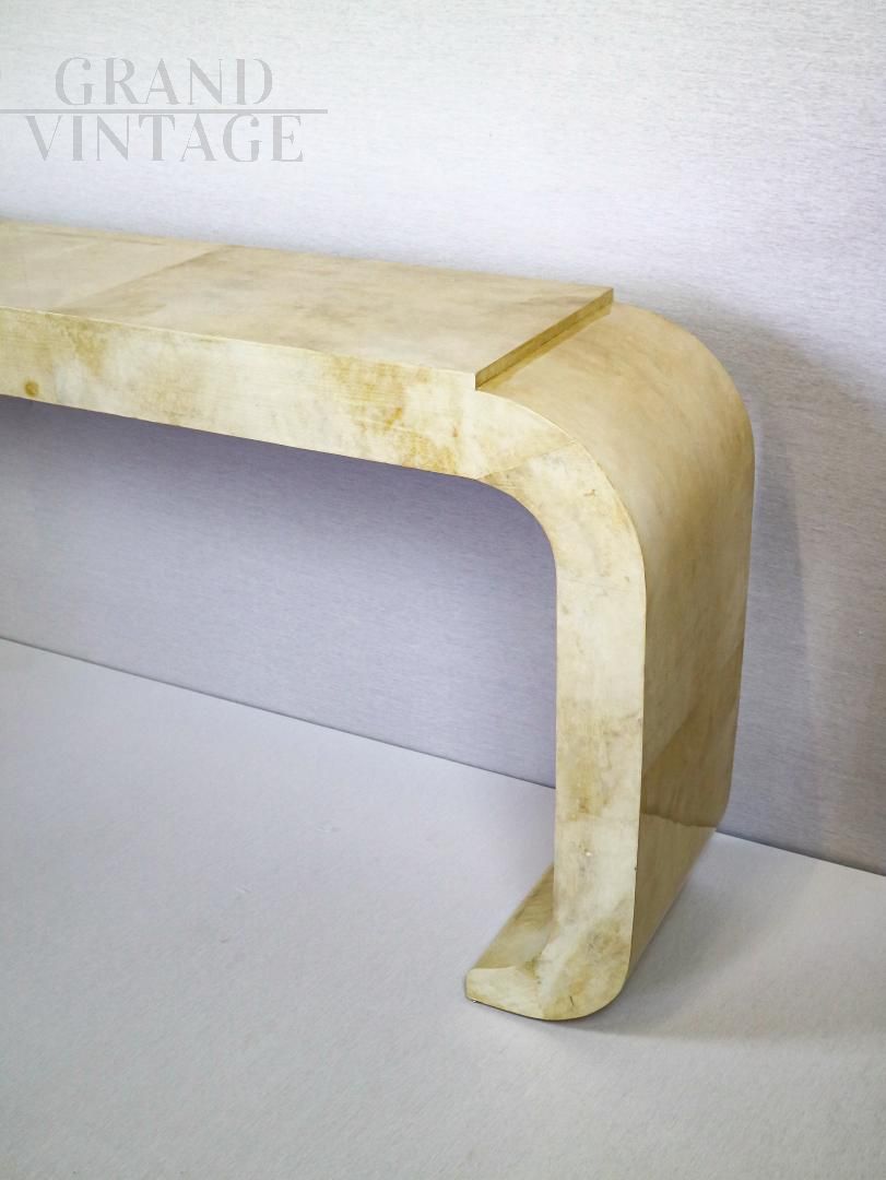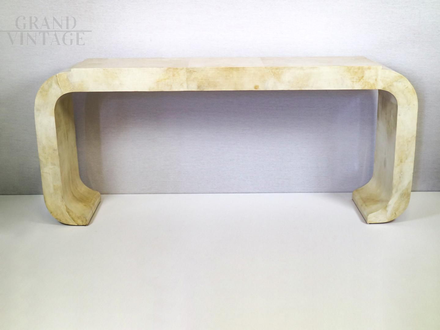 Double-sided art deco style wooden console covered in parchment in the classic ivory colour.