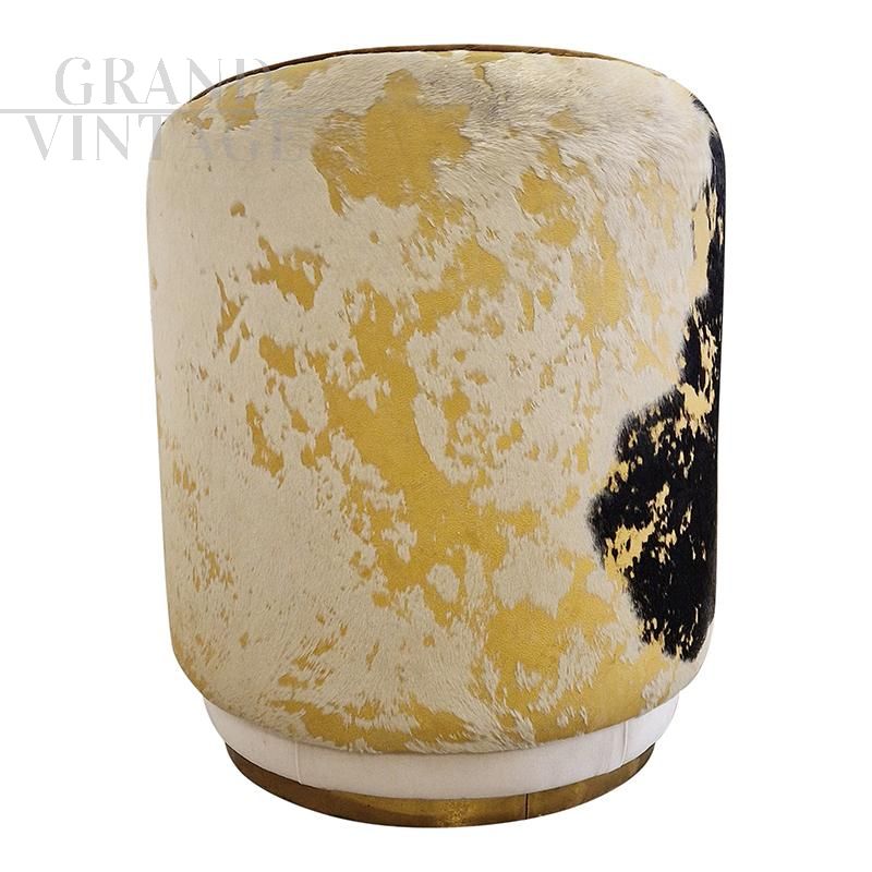 Tub armchair in white velvet with ponyskin back and matching cushion.