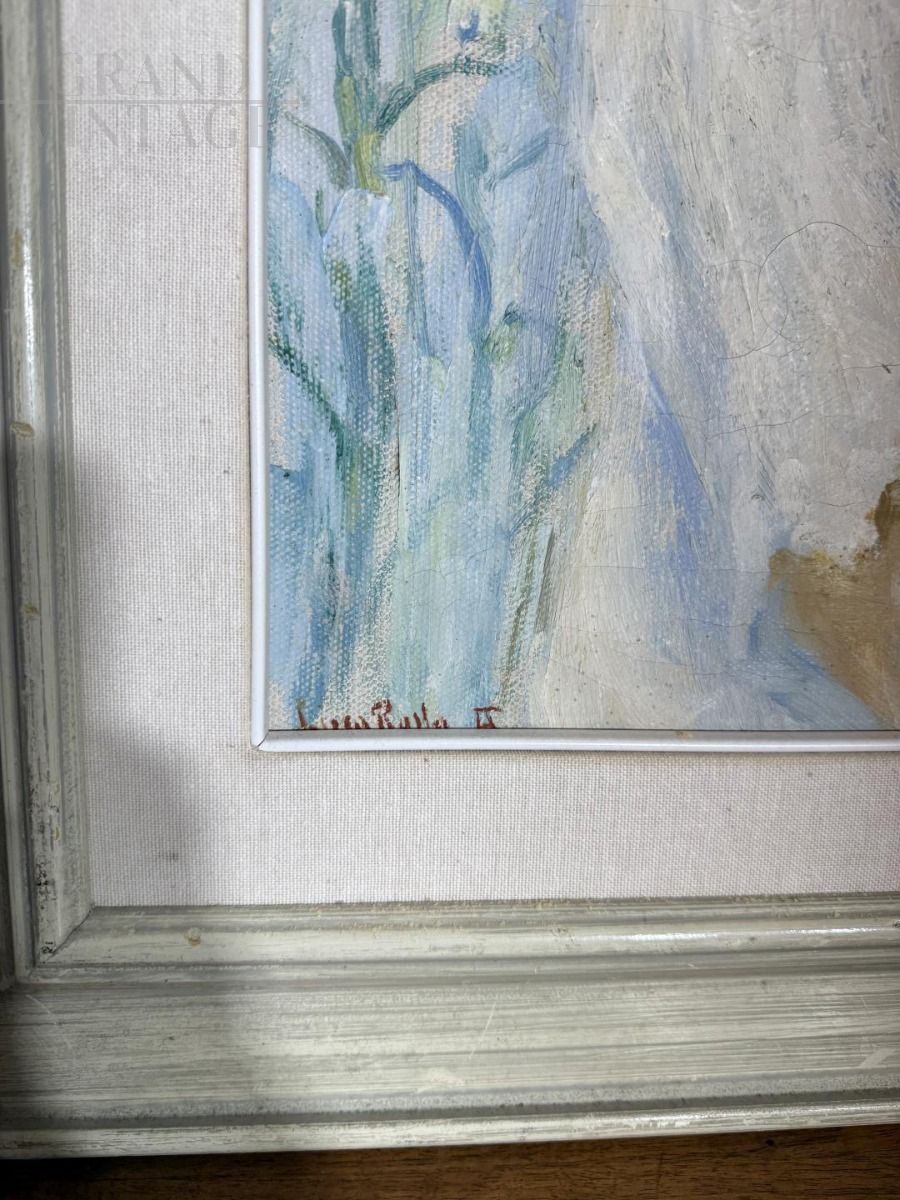 Art Nouveau painting depicting a little girl with flowers, signed