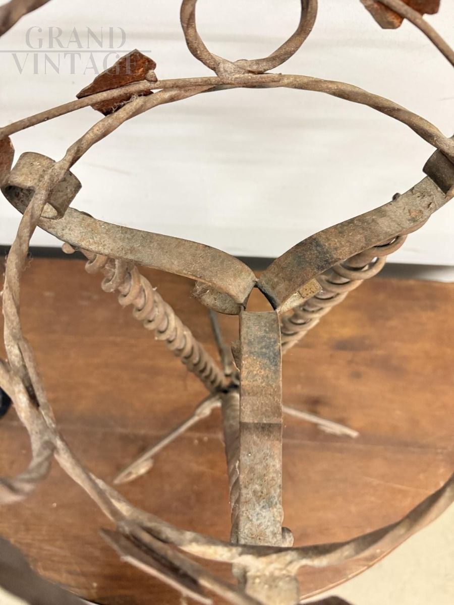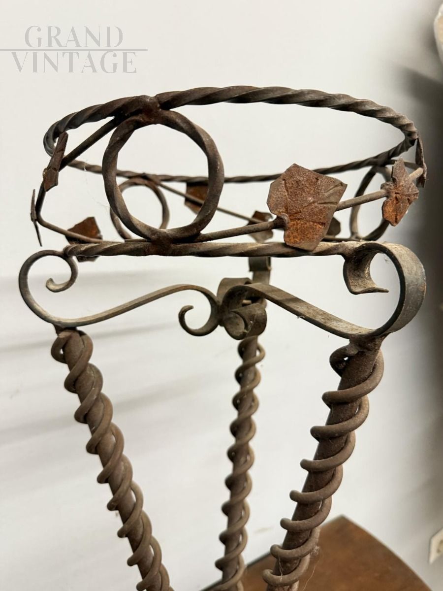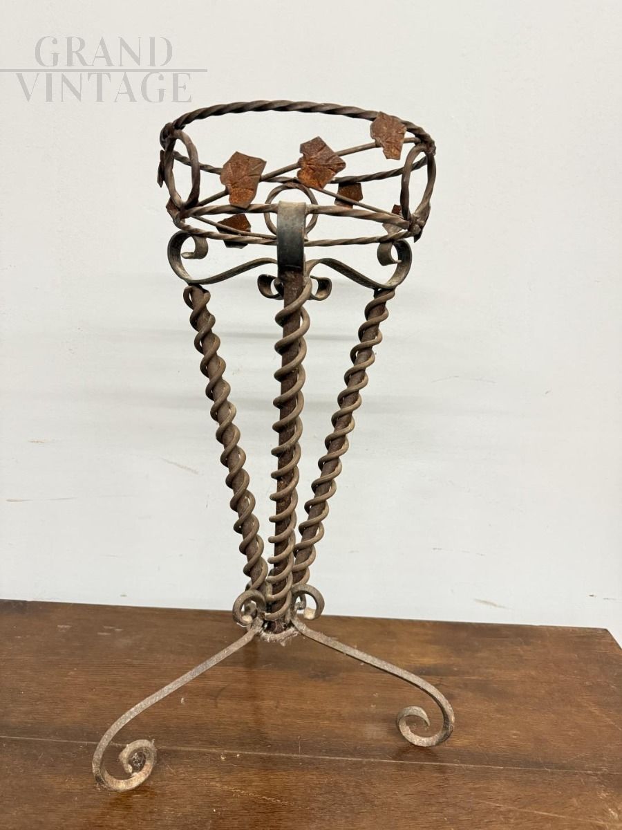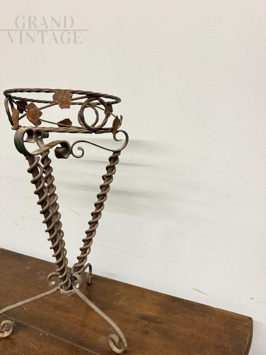 Art Nouveau plant stand in wrought iron worked with floral motifs, made in the early 1900s, height 61 cm - diameter 29 cm. In good condition.