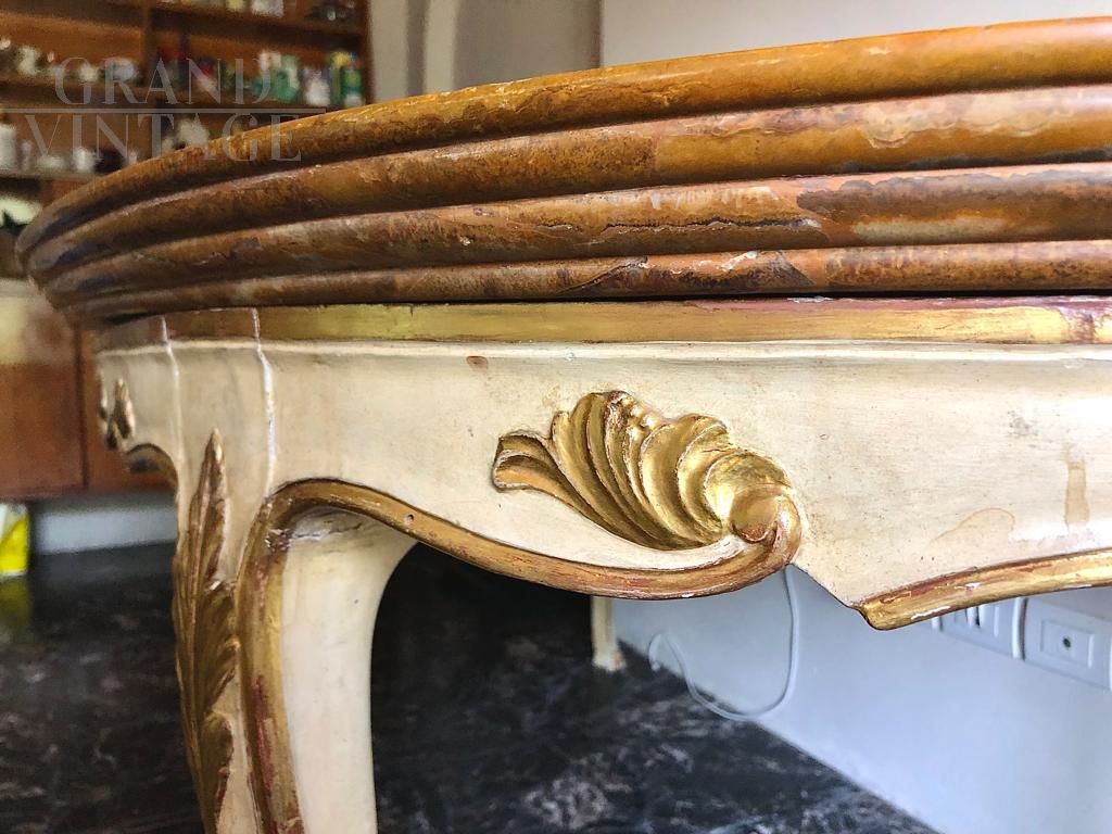 Baroque style lacquered and gilded table with alabaster top, 1950s