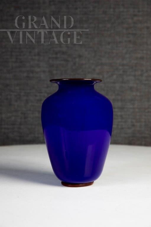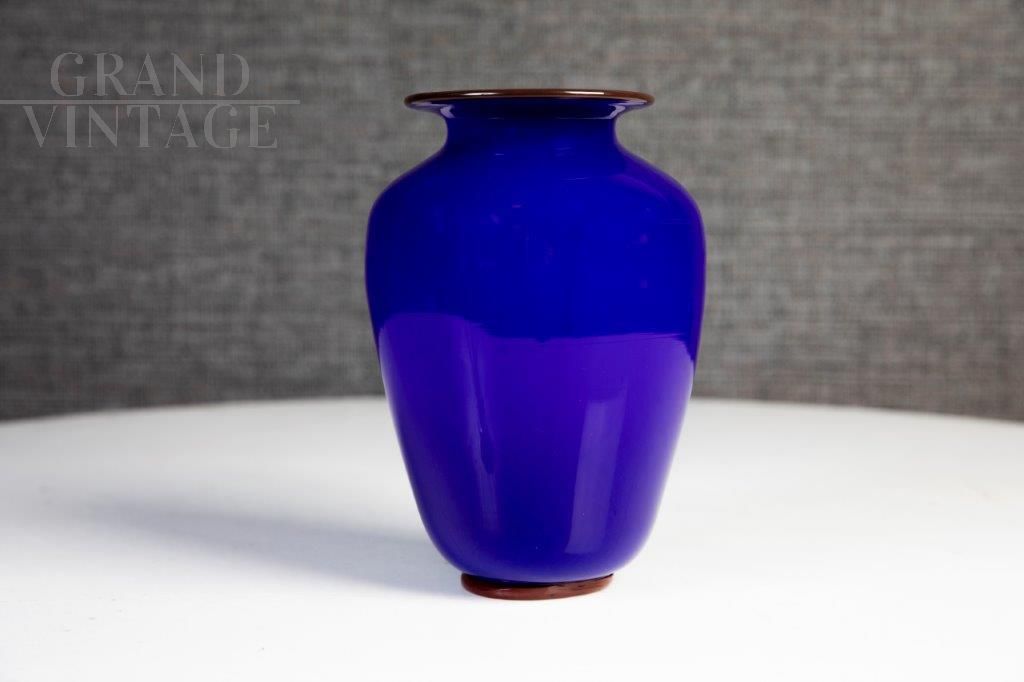 Barovier and Toso vase in electric blue Murano glass, 1980