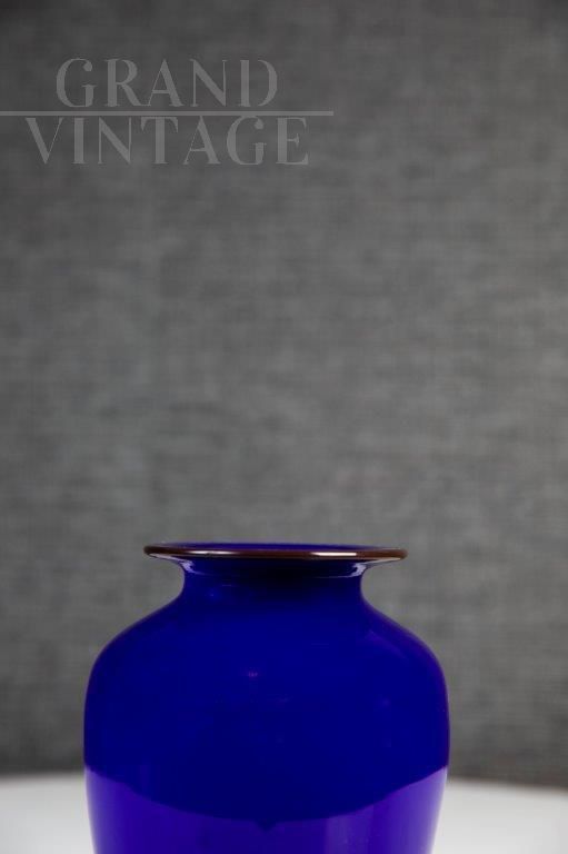 Electric blue Murano glass vase by Barovier and Toso, 1980, original signed on the bottom.