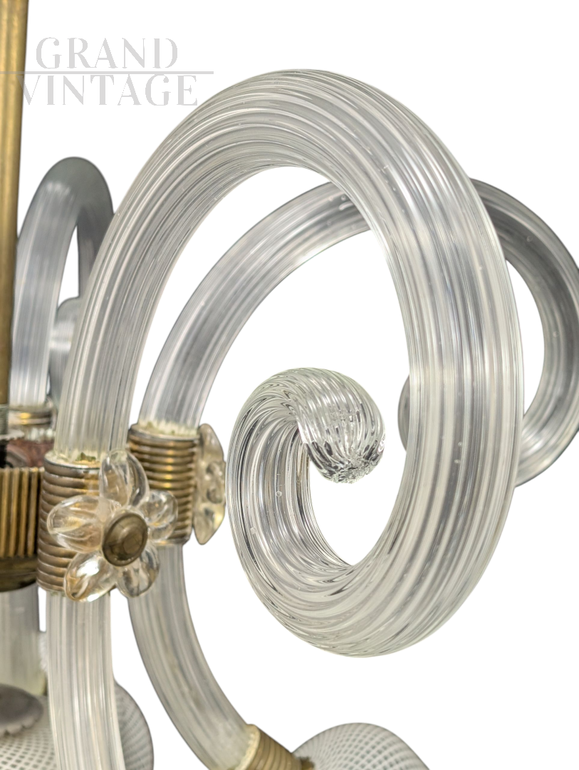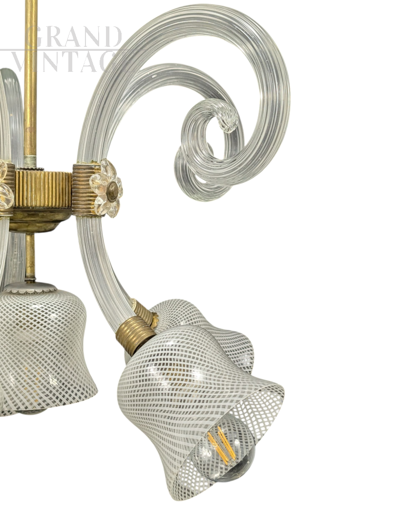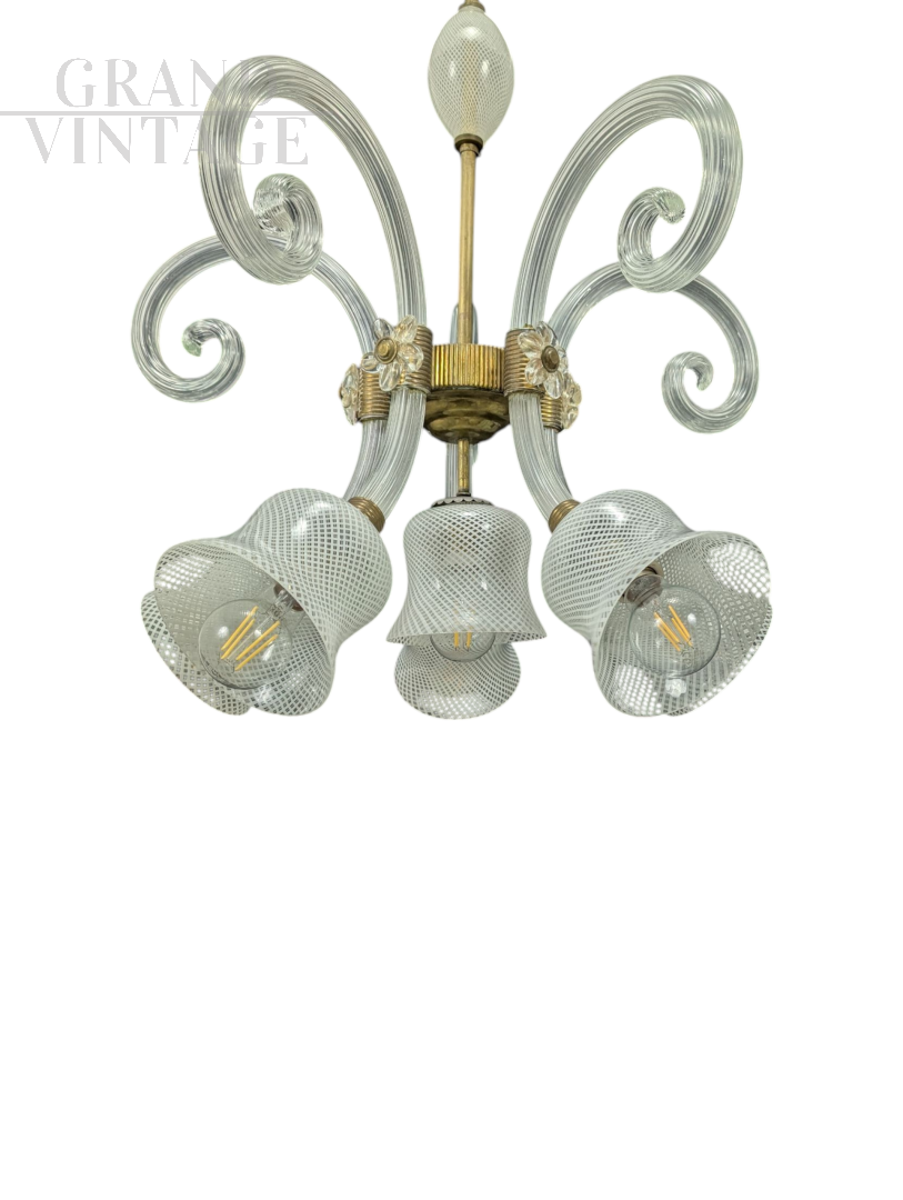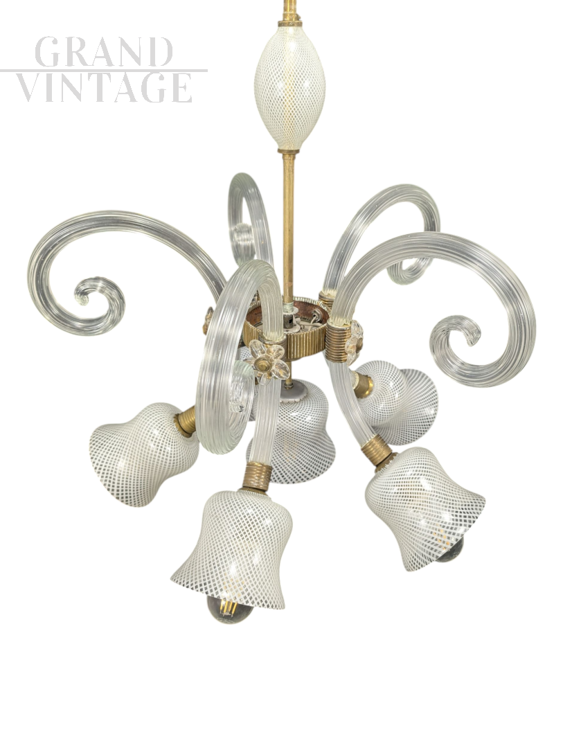 5-light chandelier in Barovier and Toso style from the 1940s, in excellent condition, electrical system working and tested. Dimensions 95 x 60 cm (height, diameter)