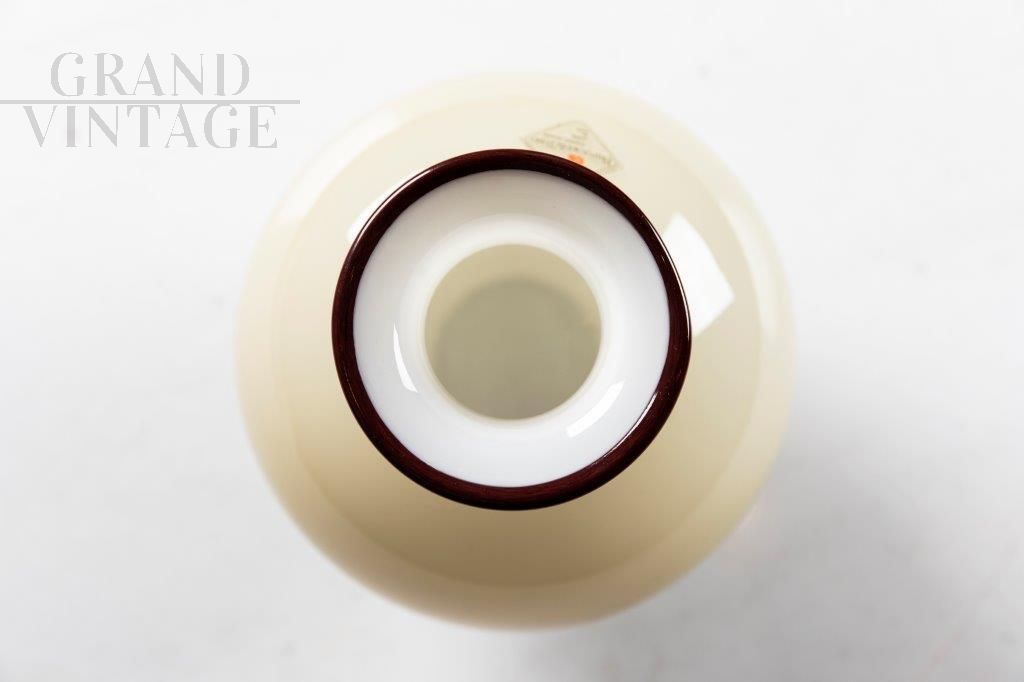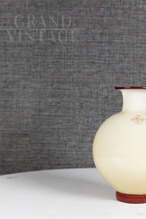 Barovier and Toso vase in milky-colored Murano glass, original from the 1980s, signed on the base (Barovier and Toso Murano), with the original label still present on the base.
