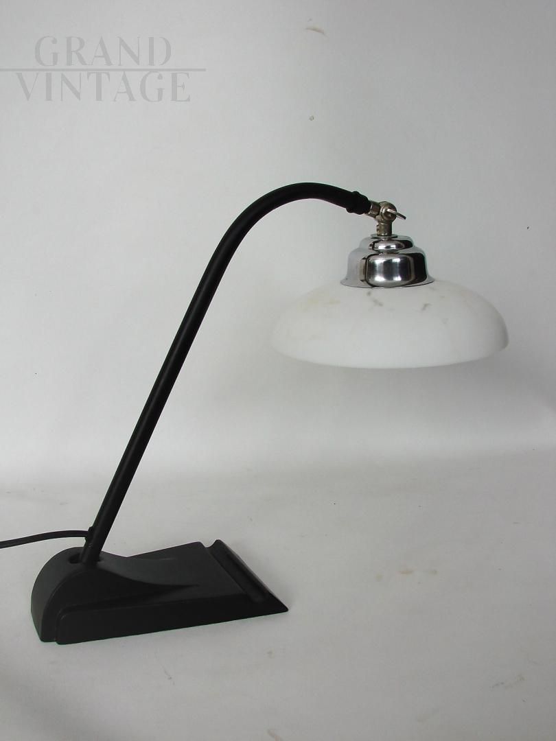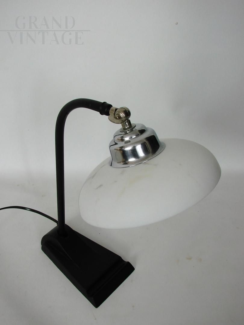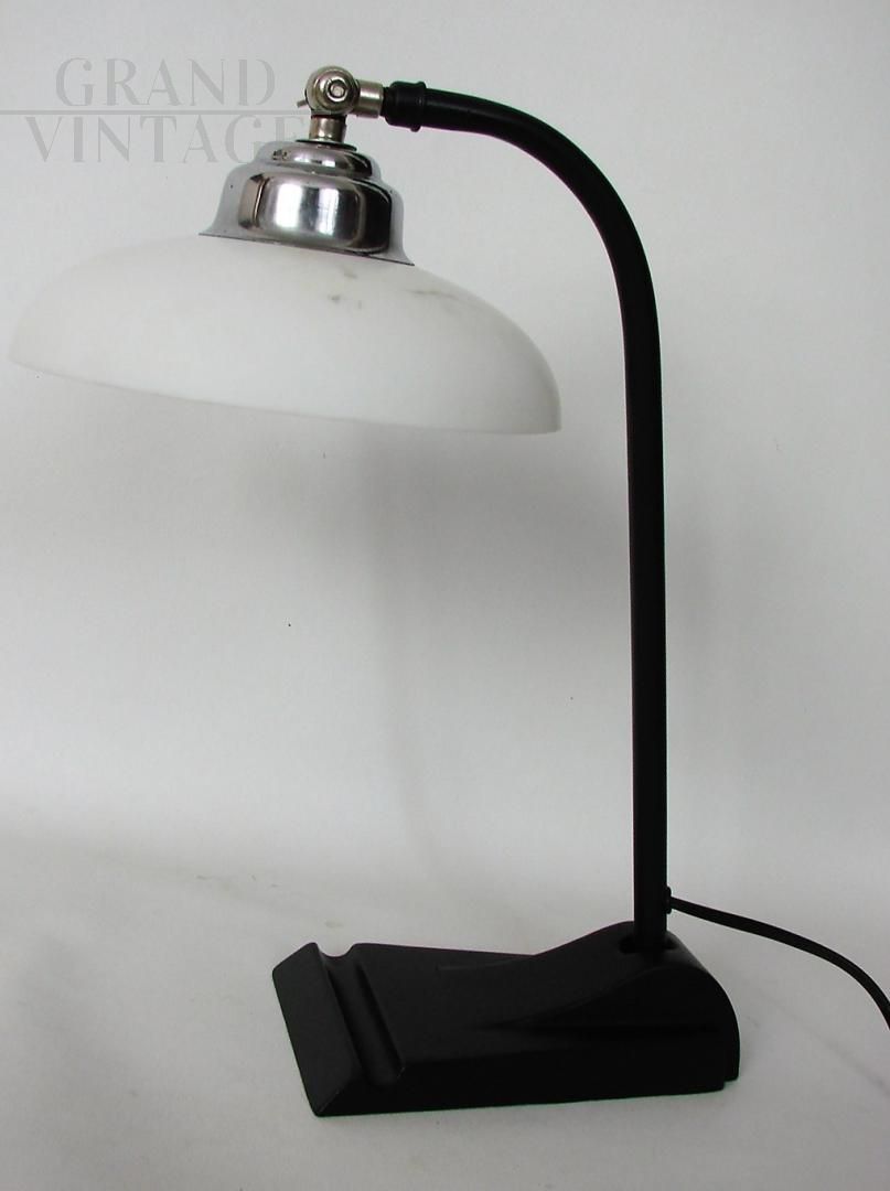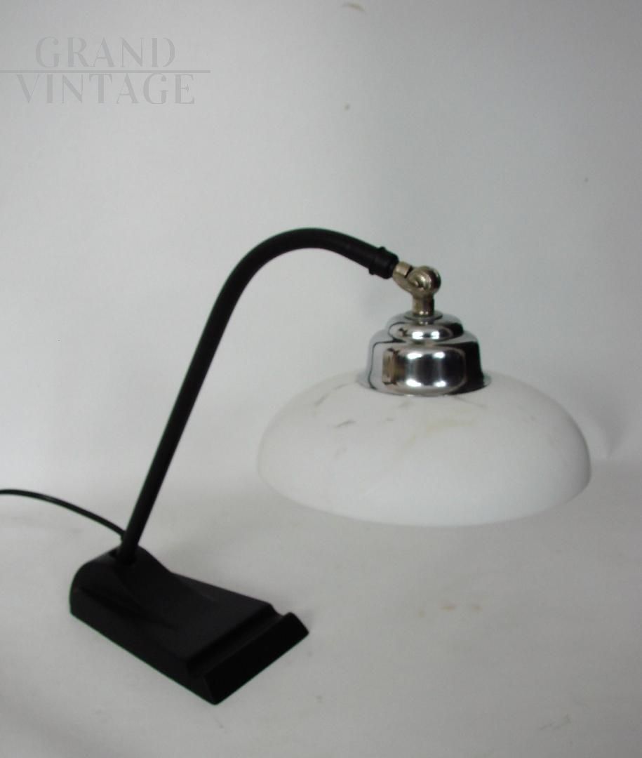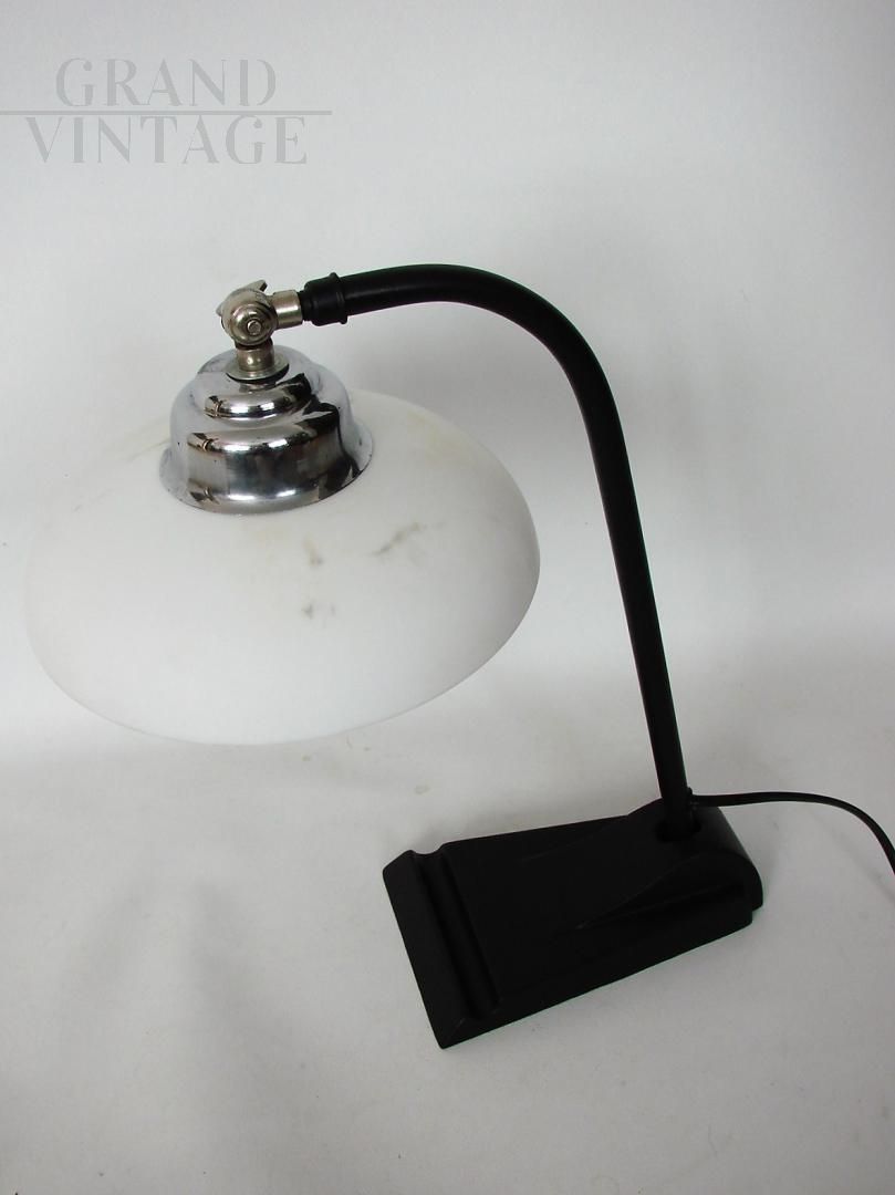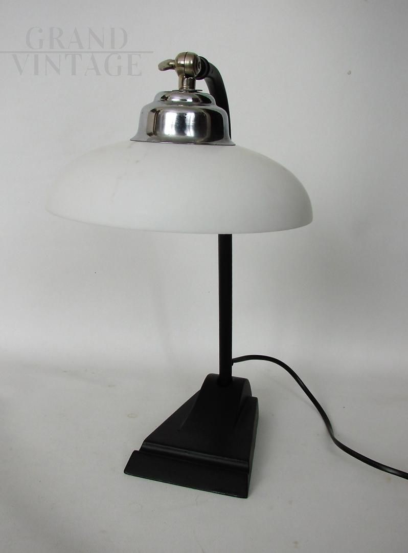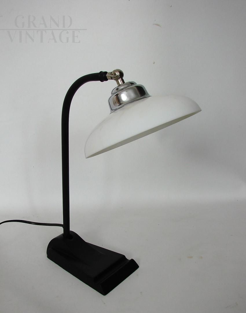 Vintage Bauhaus 1930s desk lamp in metal with white glass lampshade. The lamp requires an E27 bulb and is kept in excellent condition.