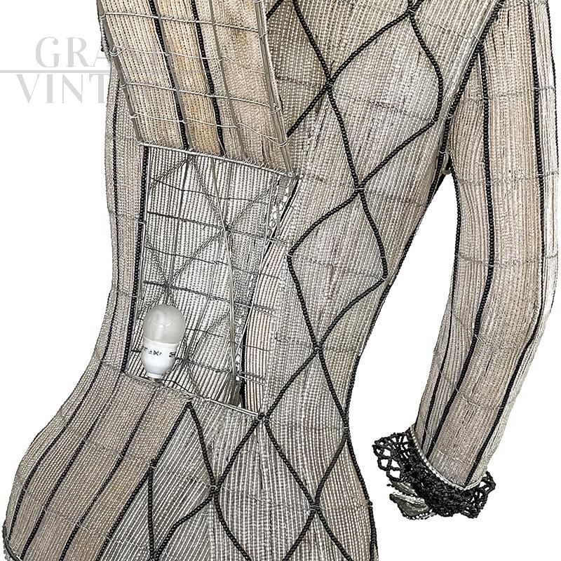 Bead floor lamp depicting a character with mask, hat and sword