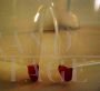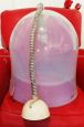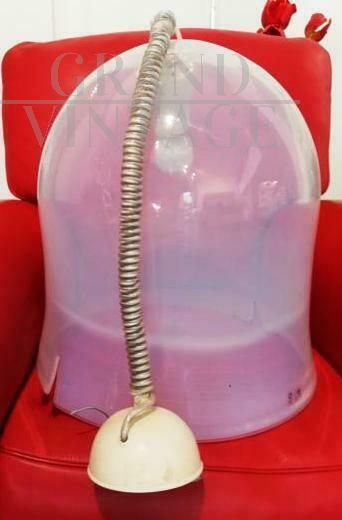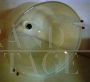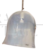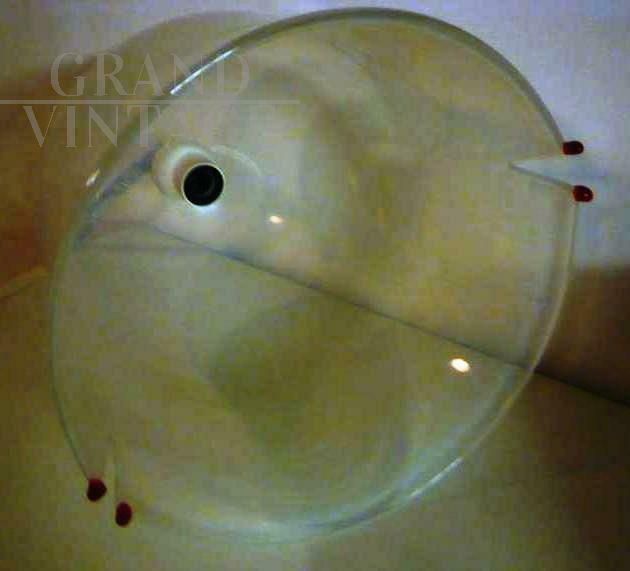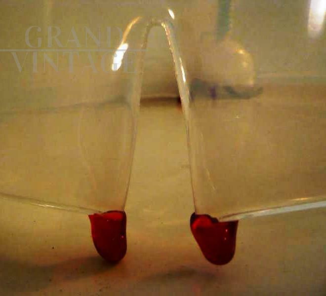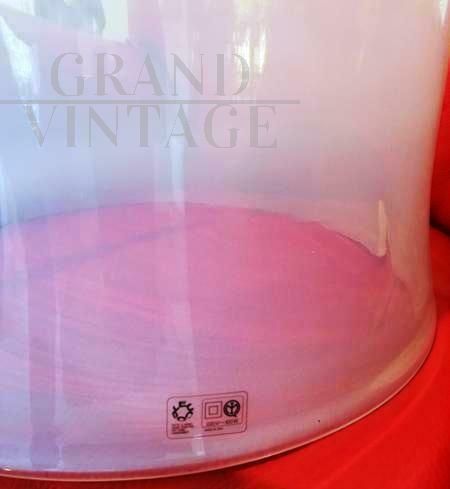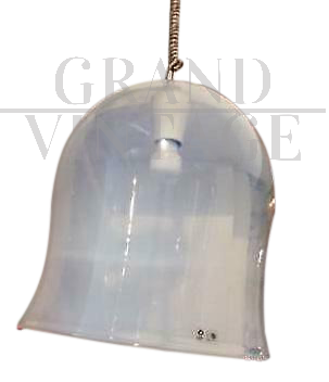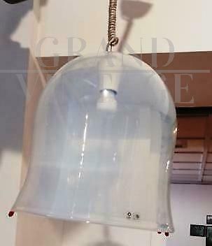 Original Murano pendant lamp by Noti Massari for Leucos, produced from 1960 to 1969. Made in the renowned Murano glass factories in white glass with red murrine. Each piece is unique due to its completely handcrafted manufacturing. The chandelier, in a single glass bell, is 45 cm high with a diameter of 40 cm. In very good condition it has no defects and is free from cracks and chips. Original lamp holder and wire with socket, working.