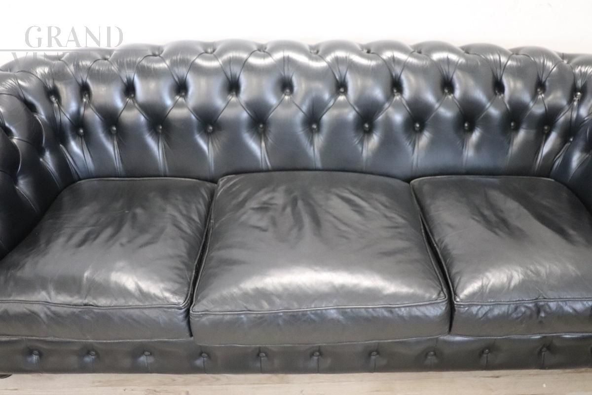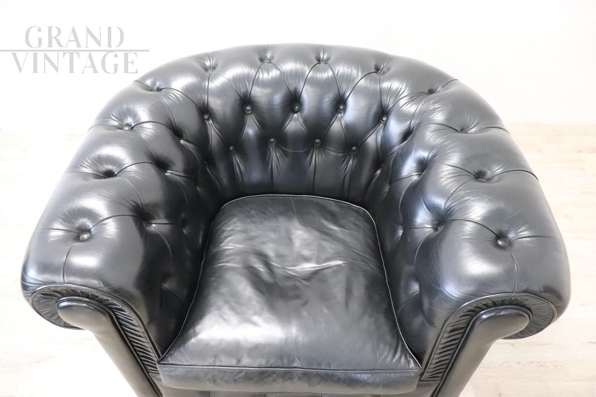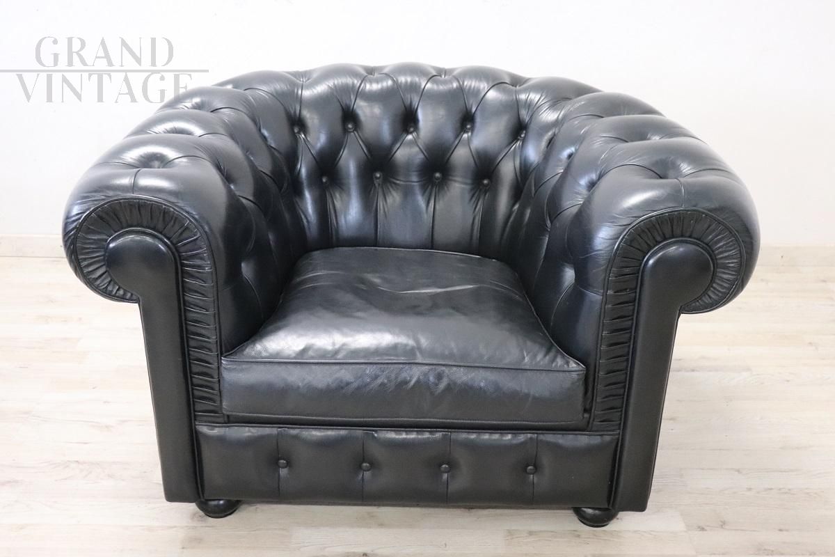 Black leather Chesterfield sofa and armchair, 1980s