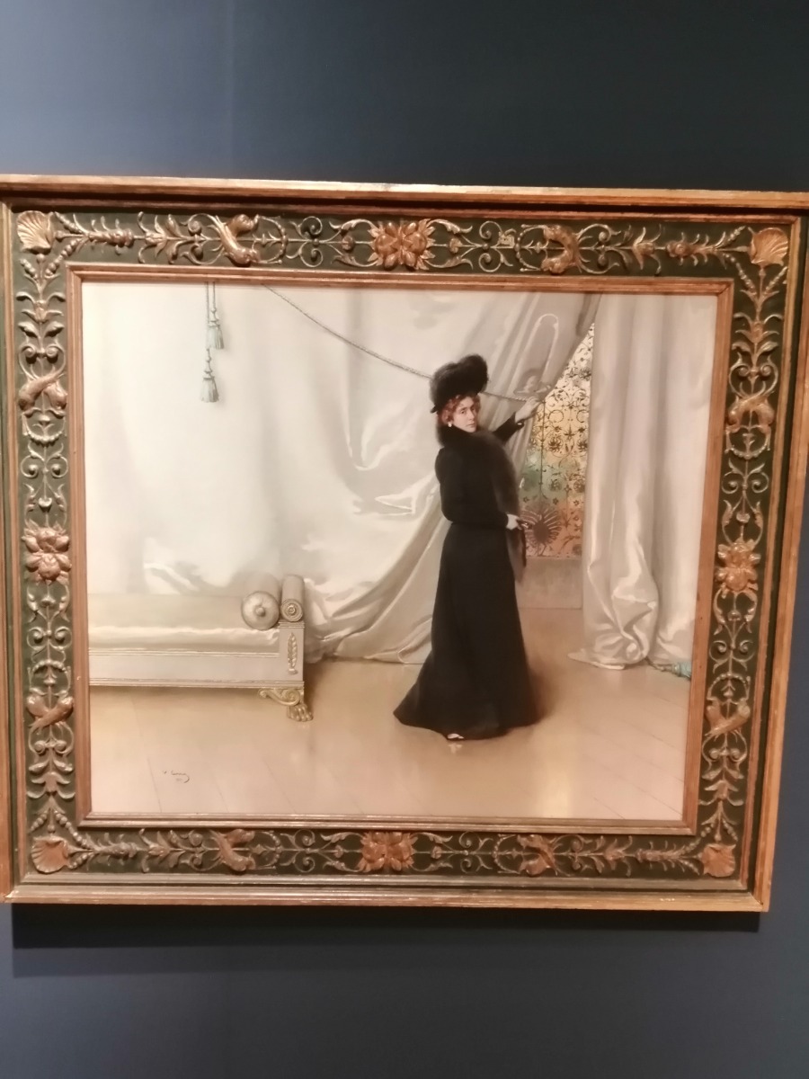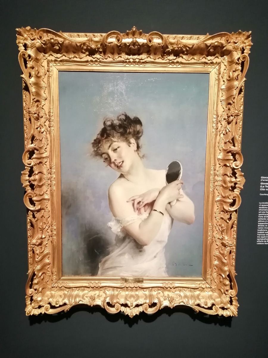 Giovanni Boldini (Ferrara 1842 – Parigi 1931), grande frequentatore dei salotti mondani, fu uno dei ritrattisti più prolifici, ritraendo i suoi soggetti anche in situazioni intime e riservate (come nel Giovane in déshabillé con specchio (La toilette), olio su tela).