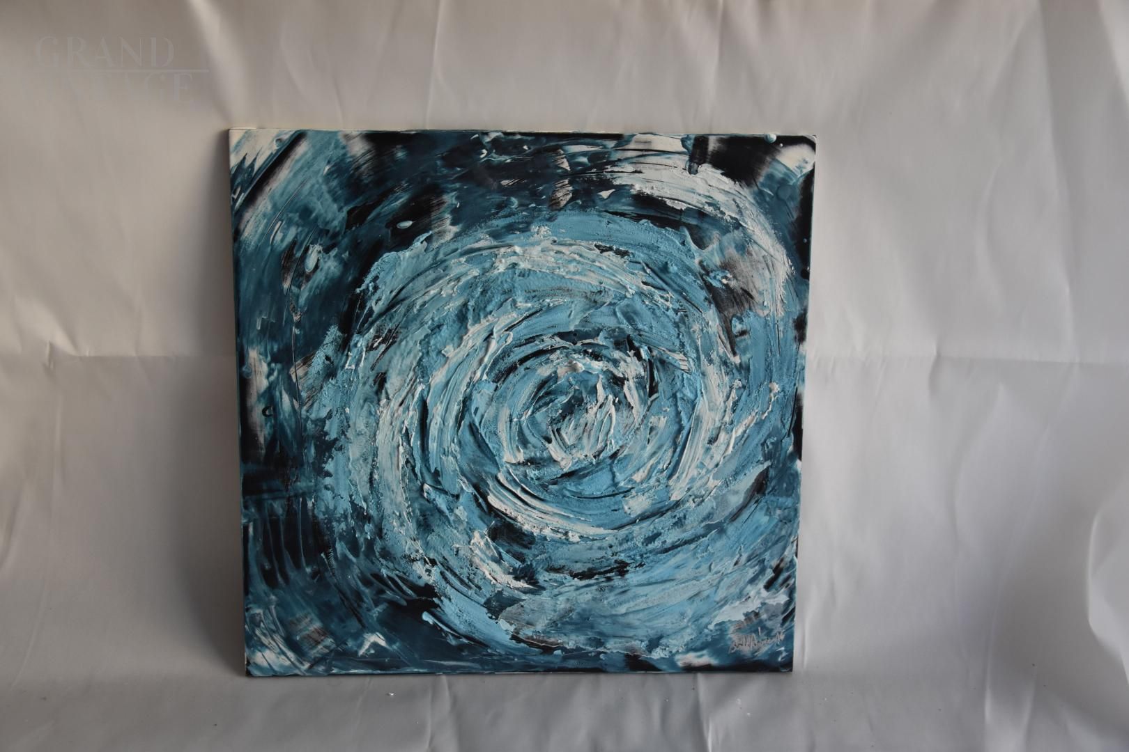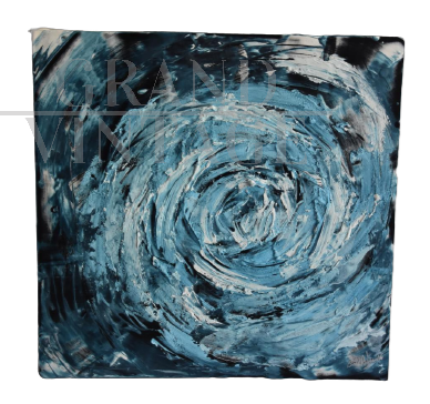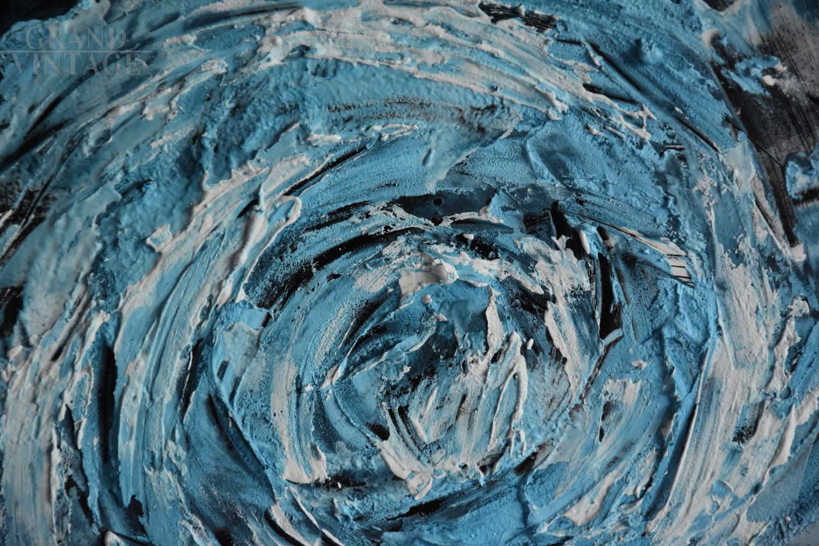 Blue Vortex - abstract painting by the Italian Lombard artist Andrea Busnelli (1989) made in acrylic and stucco on wood. An overwhelming monochrome vortex that involves the observer almost to capture his gaze. A dynamic artwork suitable for modern and design environments. Painting with certificate of originality signed by the artist.