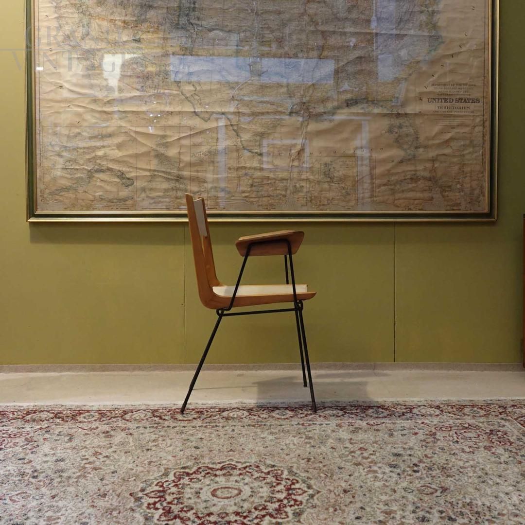 With its essential and elegant design, this Mid-Century Boomerang desk chair attributed to Carlo de Carli combines functionality and style in perfect balance. Ideal for offices, studies or work corners with a refined taste, it gives character and comfort without sacrificing the charm of vintage design.