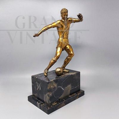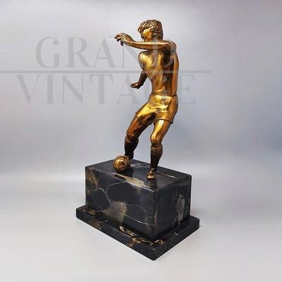 Bronze footballer sculpture on black marble base, made in Italy in the 1920s or 1930s. The item is in excellent condition.