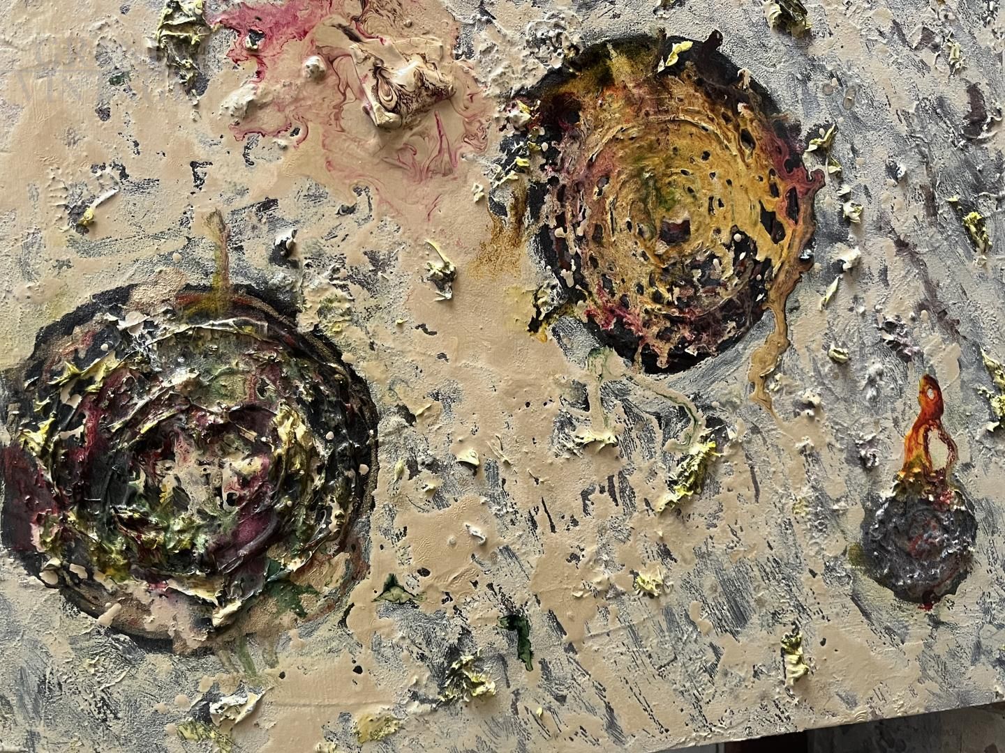 Bruno Carlino, abstract painting in tempera and enamel on panel, 2020