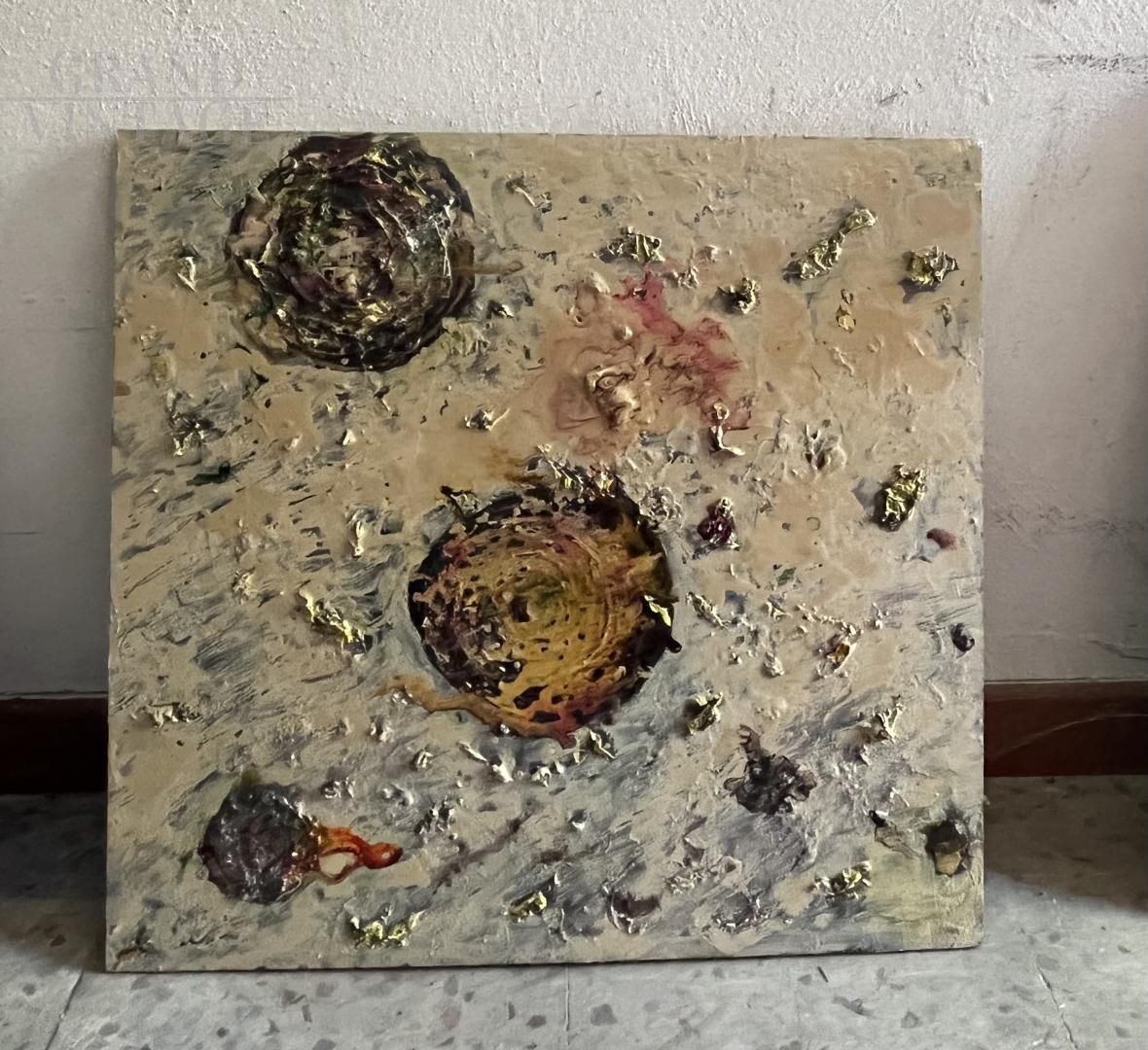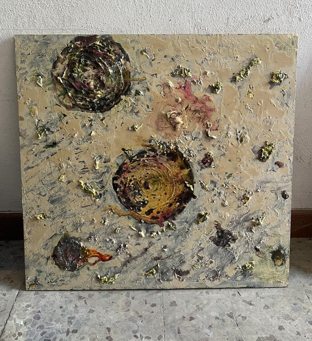 Abstract painting made in tempera and enamel on panel by the Sicilian artist Bruno Carlino (1952). A contemporary artwork in which colors and shapes mix in a dynamic and energetic dance, the result of the artist's creativity. Bruno Carlino (1952) is an inventive and versatile Sicilian artist, capable of creating valuable abstract artworks but also copies of the most famous paintings in the history of art. Painting with certificate of authenticity signed by the artist. Ideal artwork for modern environments.