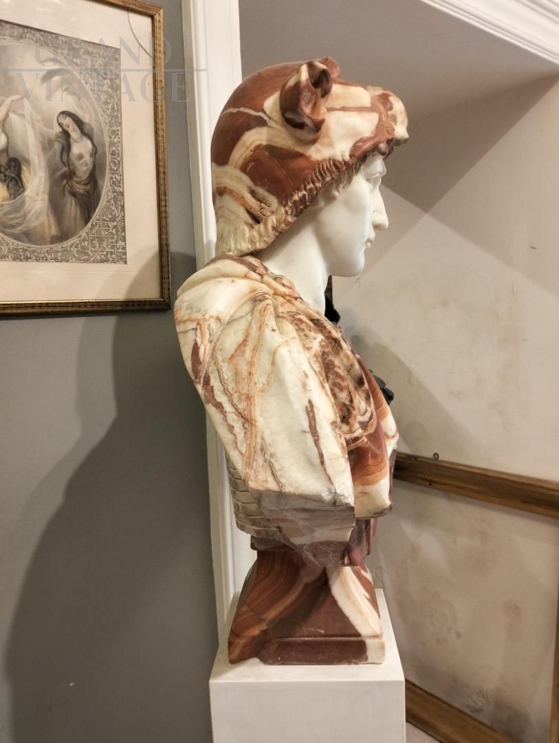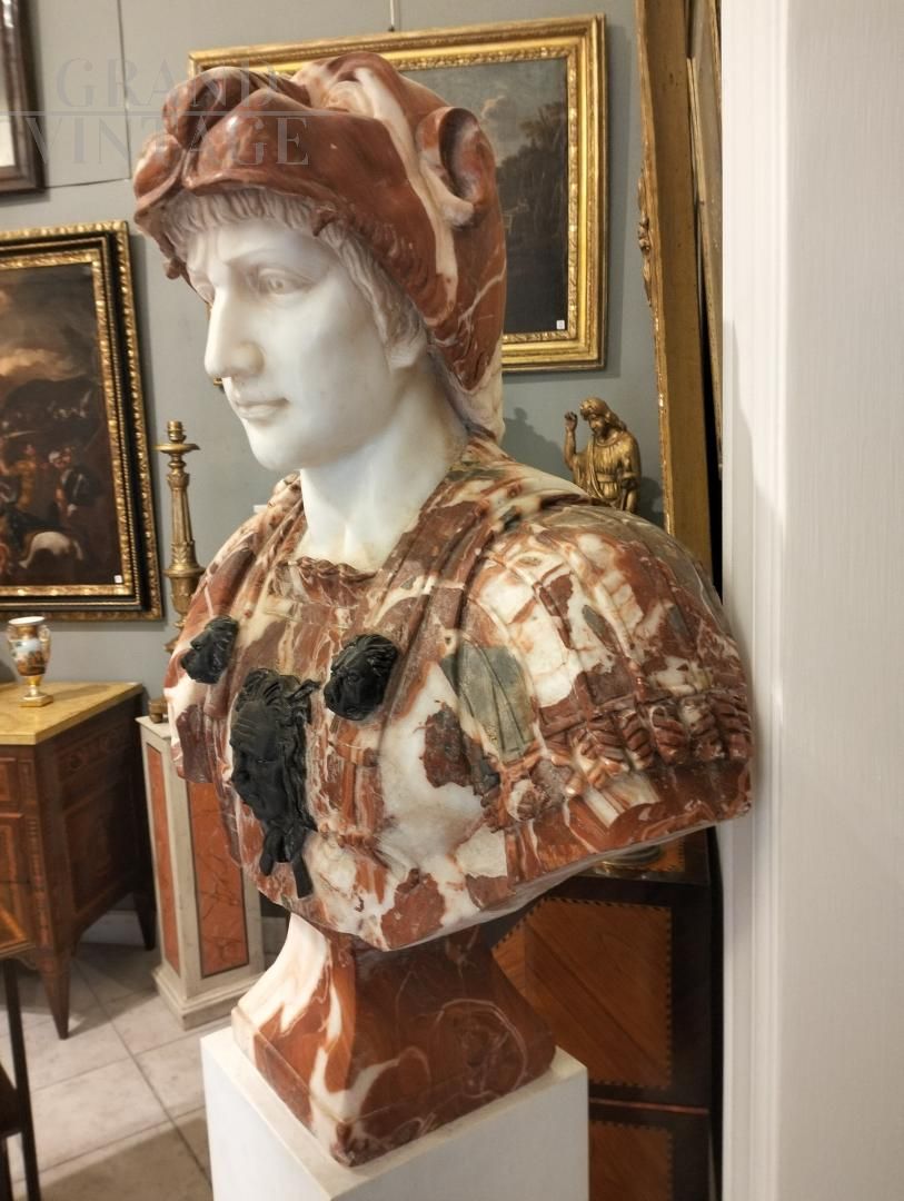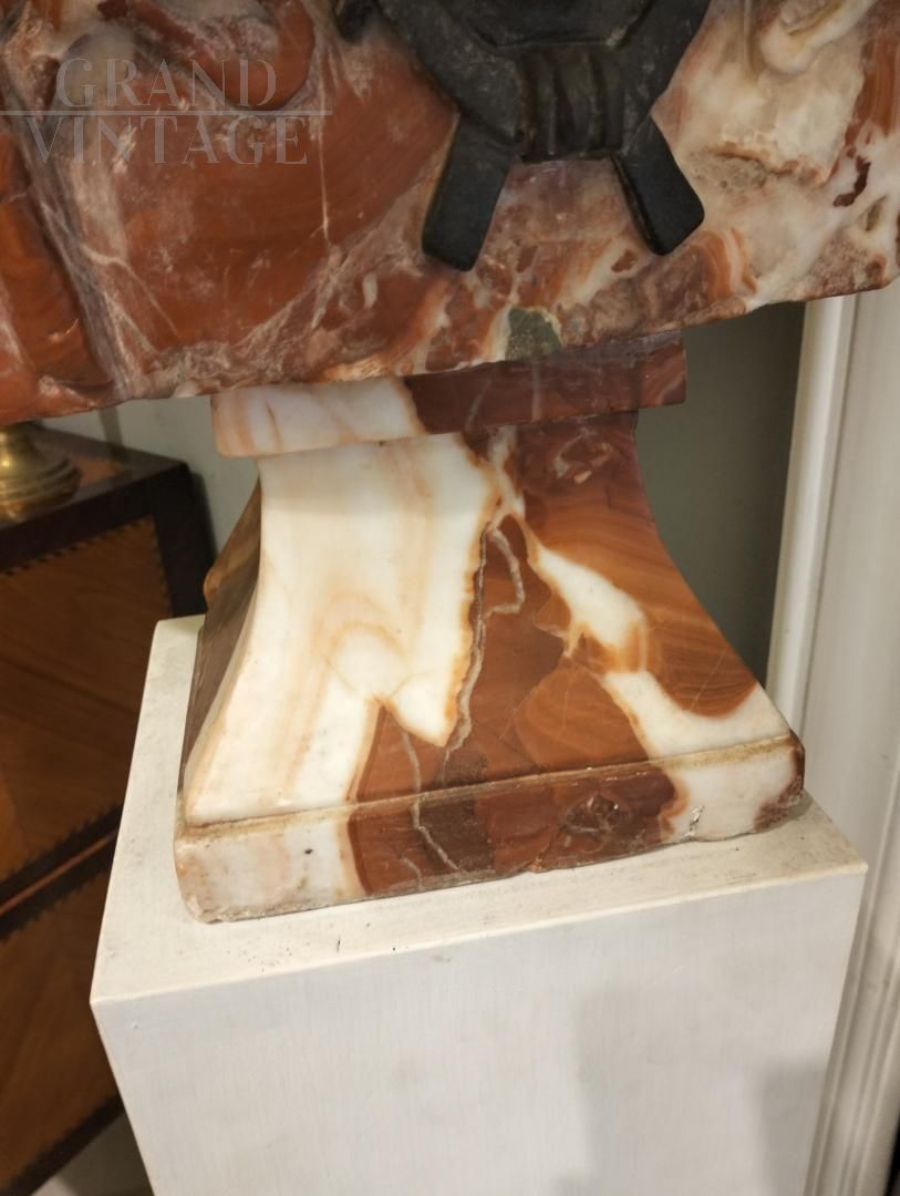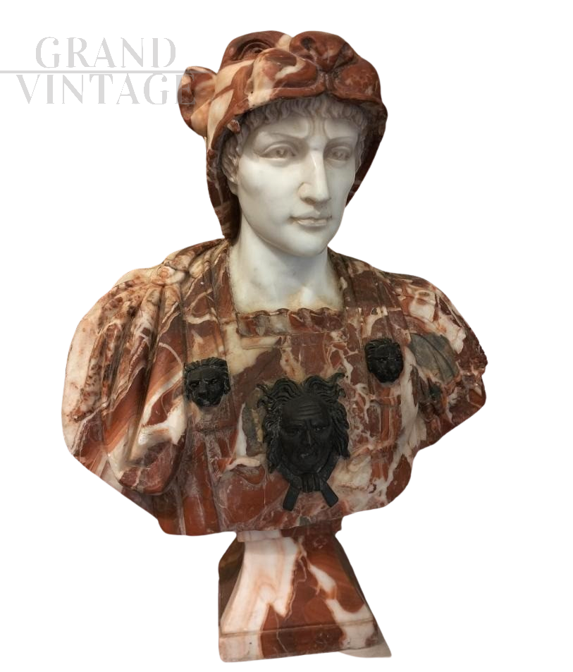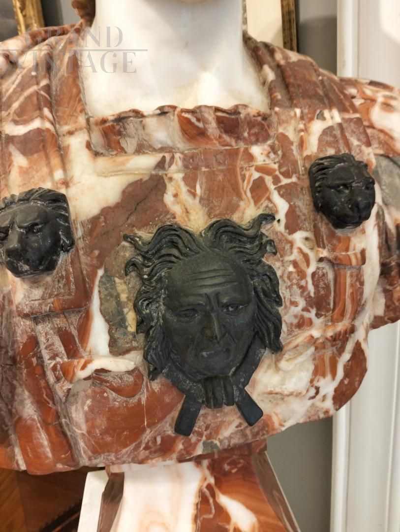 Bust made with three types of marble: Verona red, Belgian black and white. It seems in perfect conditions.