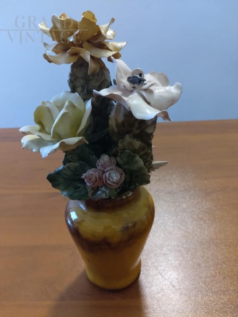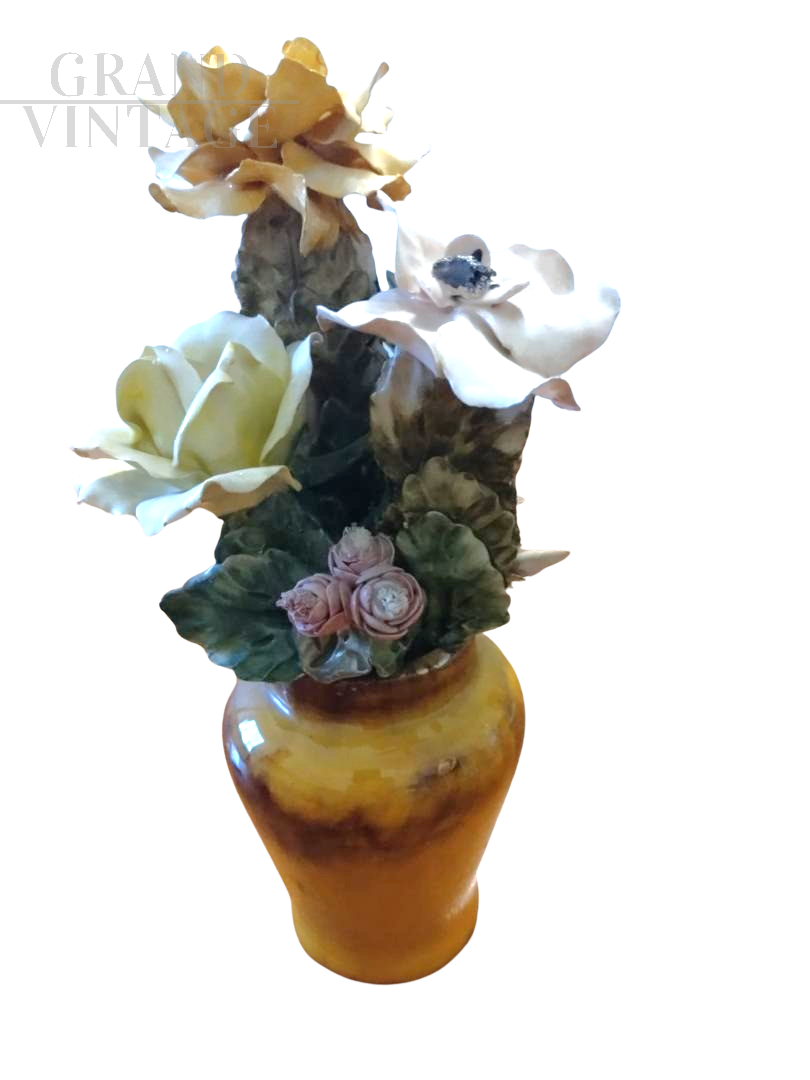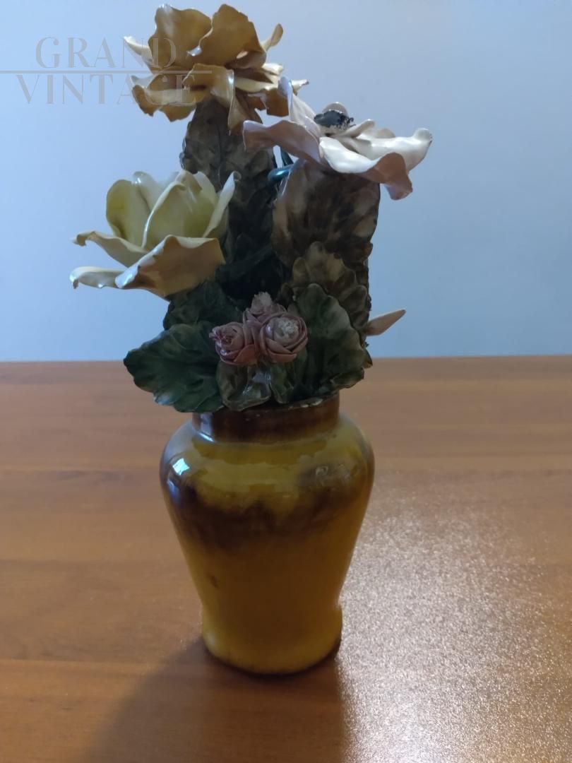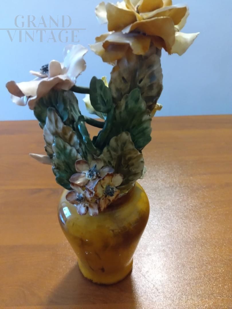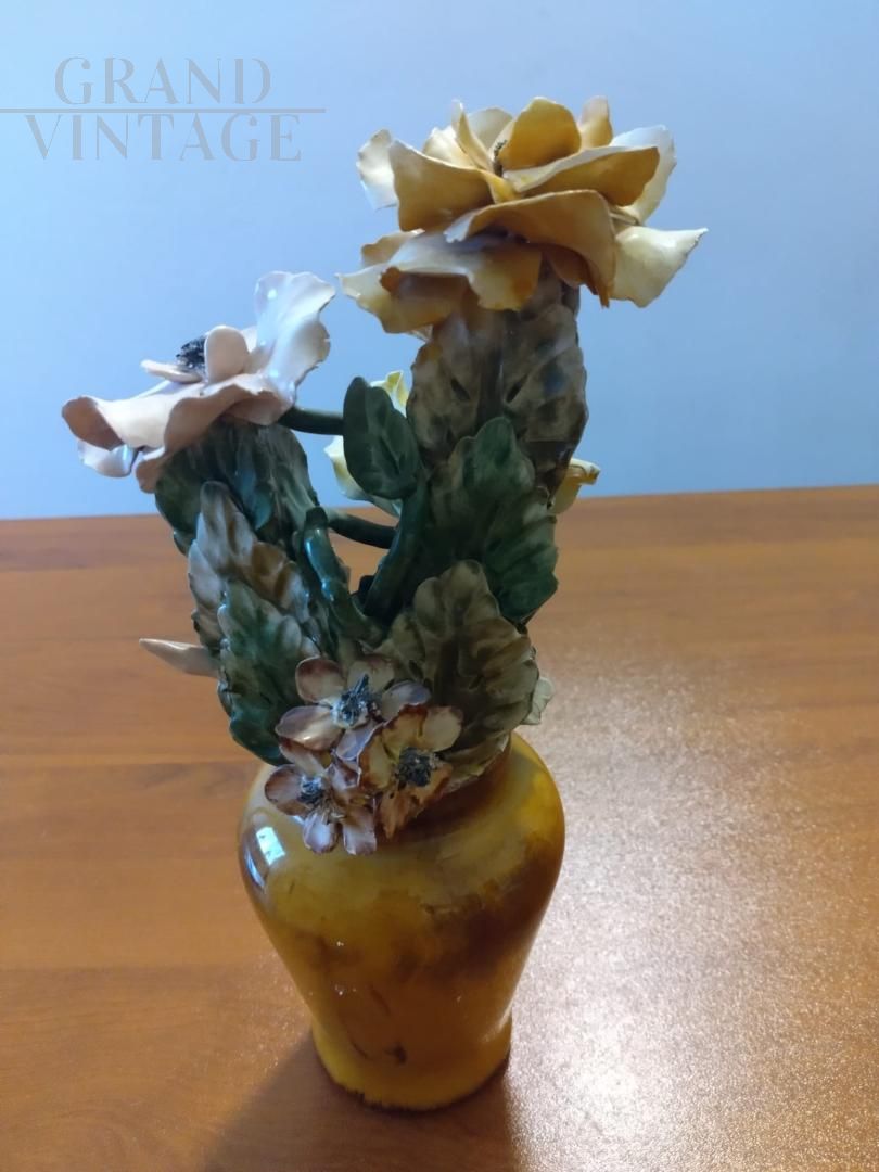Very rare vintage flower vase in Capodimonte colored ceramic, Italy 1970s, in excellent condition, a collector's item.
