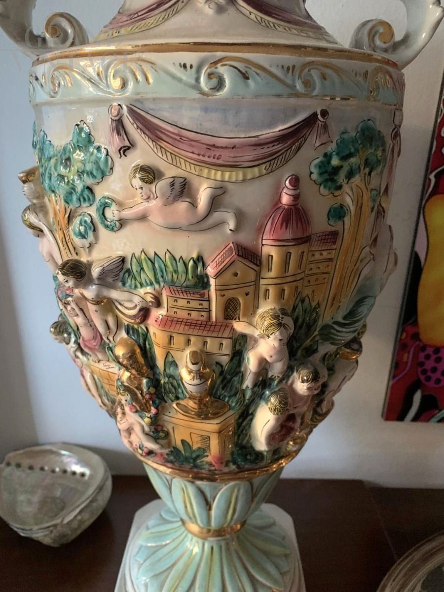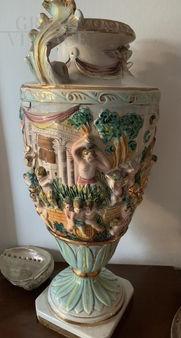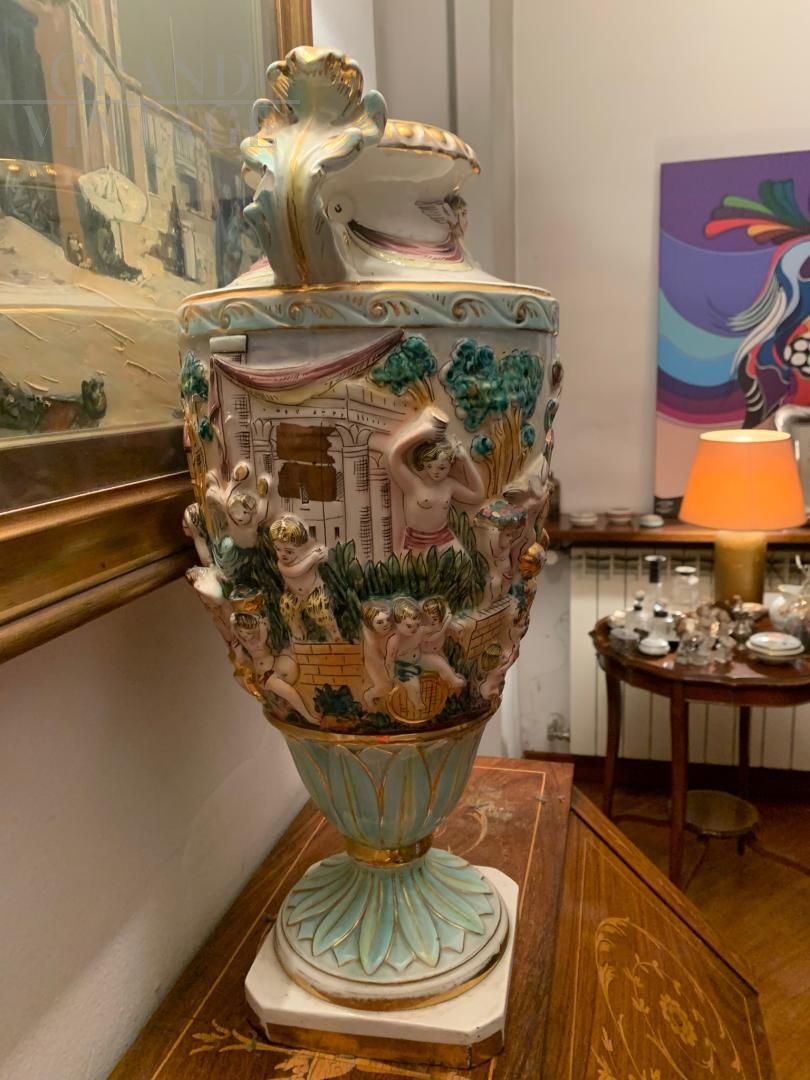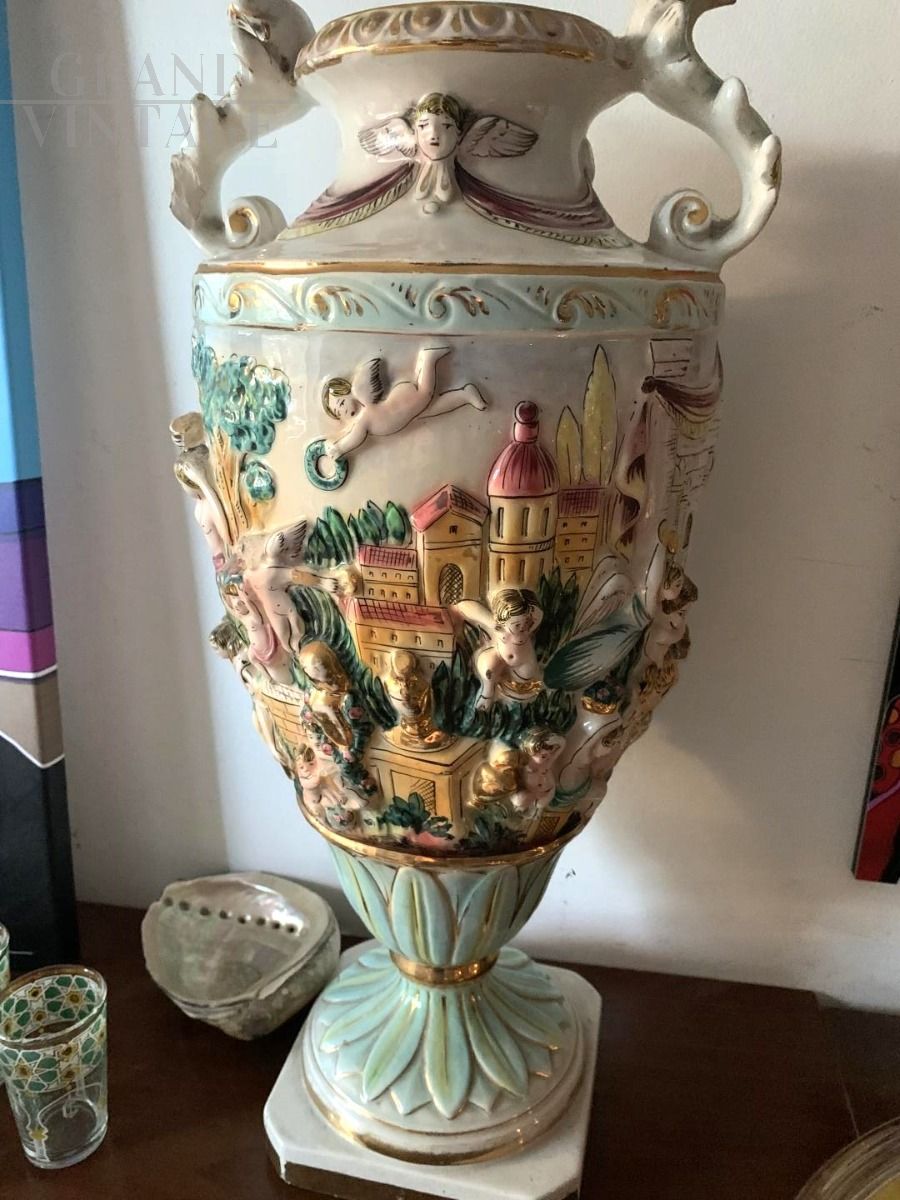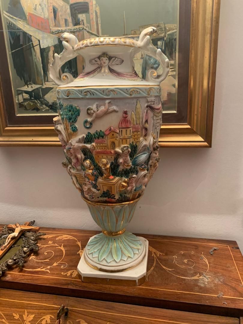 Important numbered Capodimonte vase, richly decorated and coloured, in perfect condition.