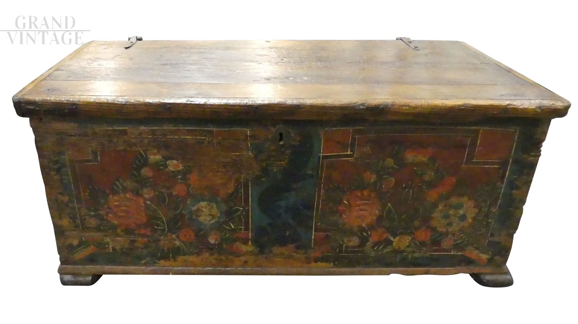 Chest of the late 1700s in original patina, in larch wood. The hinges are original. Of Austrian origin.