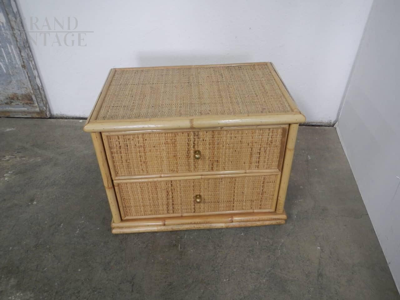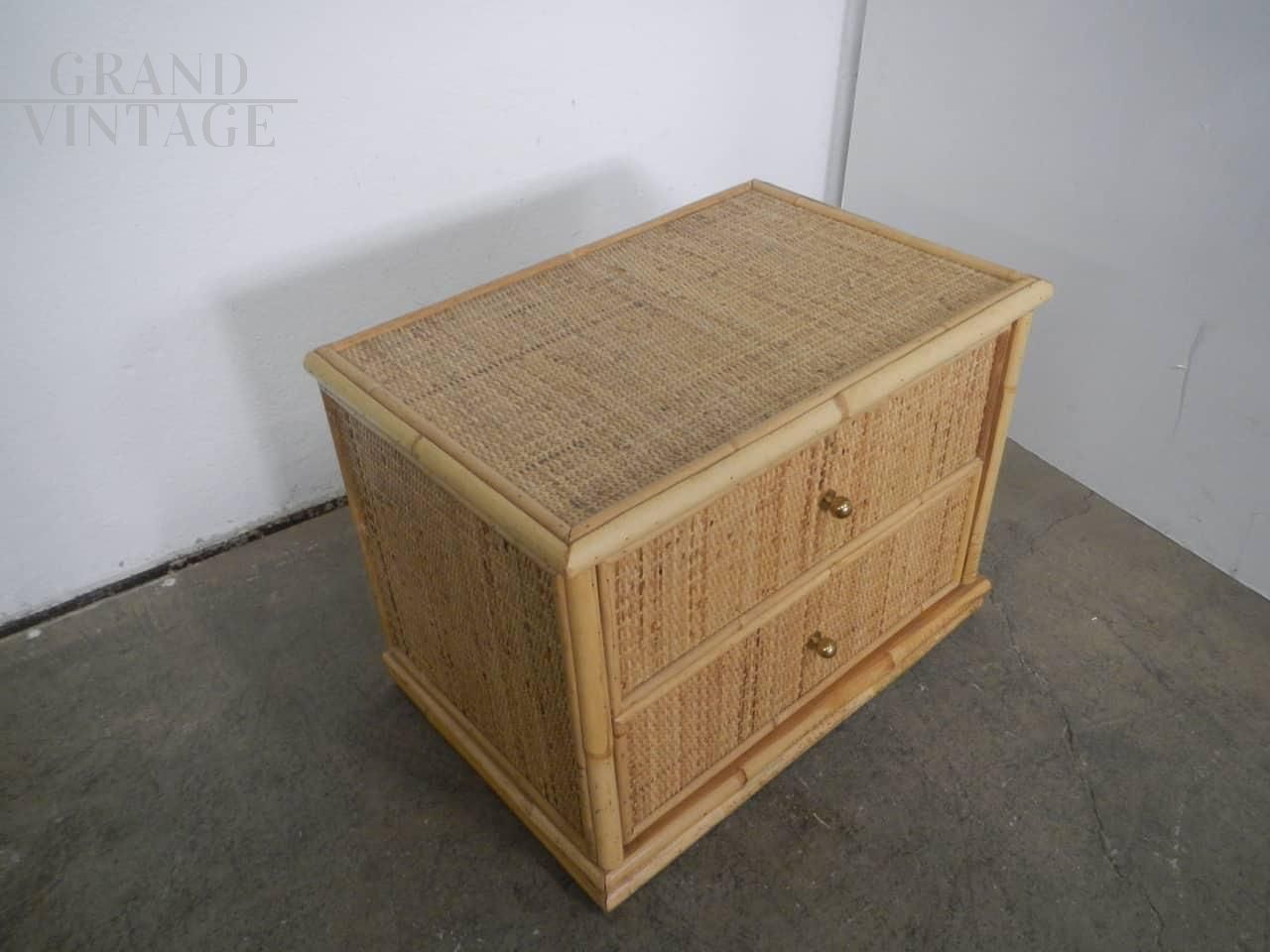 Vintage Bamboo 2-Drawer bedside table or small chest of drawers, 1960s.