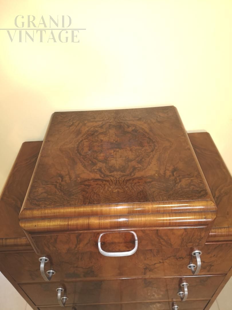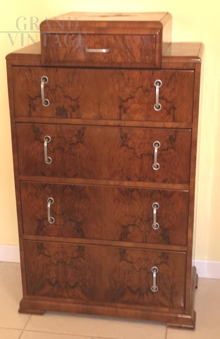 Beautiful honey-colored briar chest of drawers with large drawers and a small drawer on the top, in excellent condition, one handle is missing, as shown in the photos.
