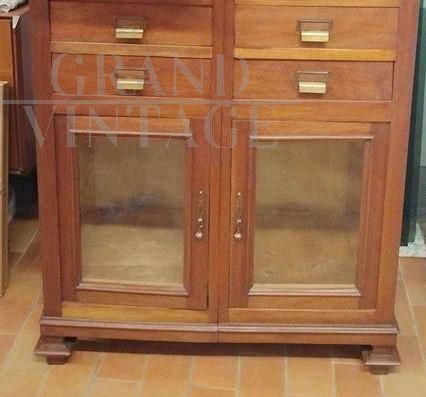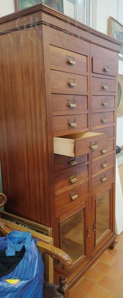Vintage office chest of drawers with 16 drawers and two glass doors