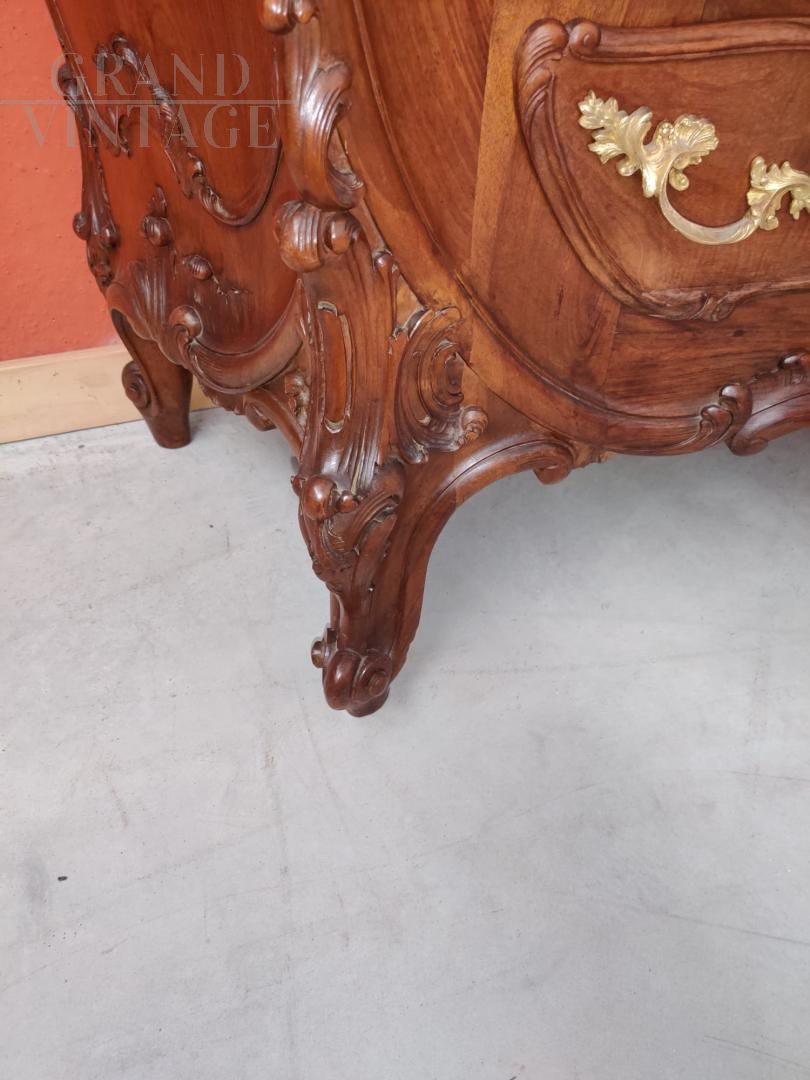 Baroque Louis XV chest of drawers in walnut wood with mirror