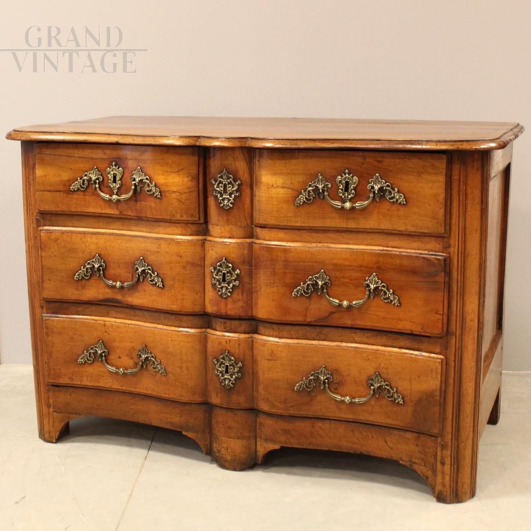 Antique 18th century Louis XV chest of drawers in solid walnut, with two small drawers in the upper part and two larger drawers in the lower part.